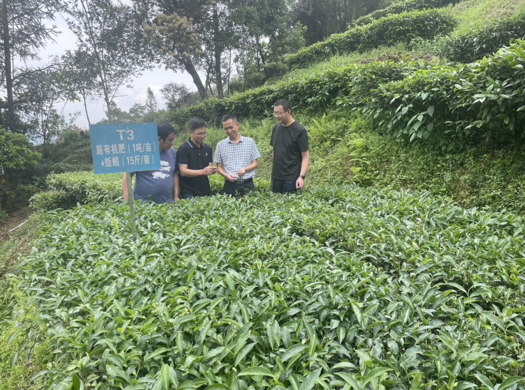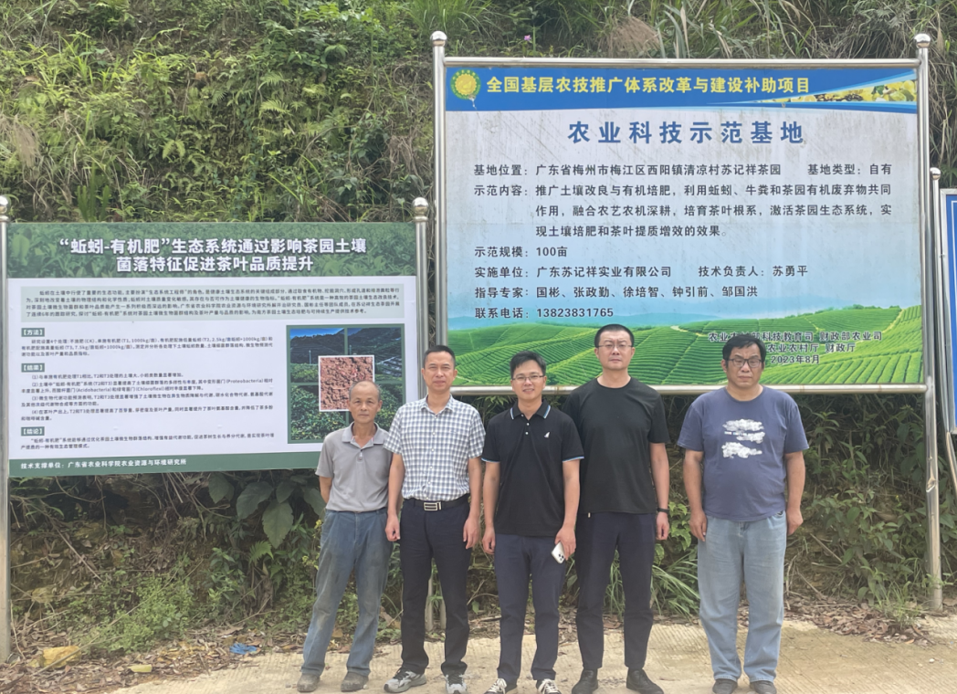 4月22日上午,专家团队前往广东苏记祥实业有限公司茶园基地,围绕“蚯蚓-有机培肥+绿肥种植”生态技术示范项目进行指导。专家实地察看茶树长势、绿肥生长及土壤改良情况,对生态培肥、绿色防控等技术细节进行讲解与优化。团队现场采集茶园土壤样本,为构建茶园生态种植体系、提升茶叶品质与质量安全提供科学依据。