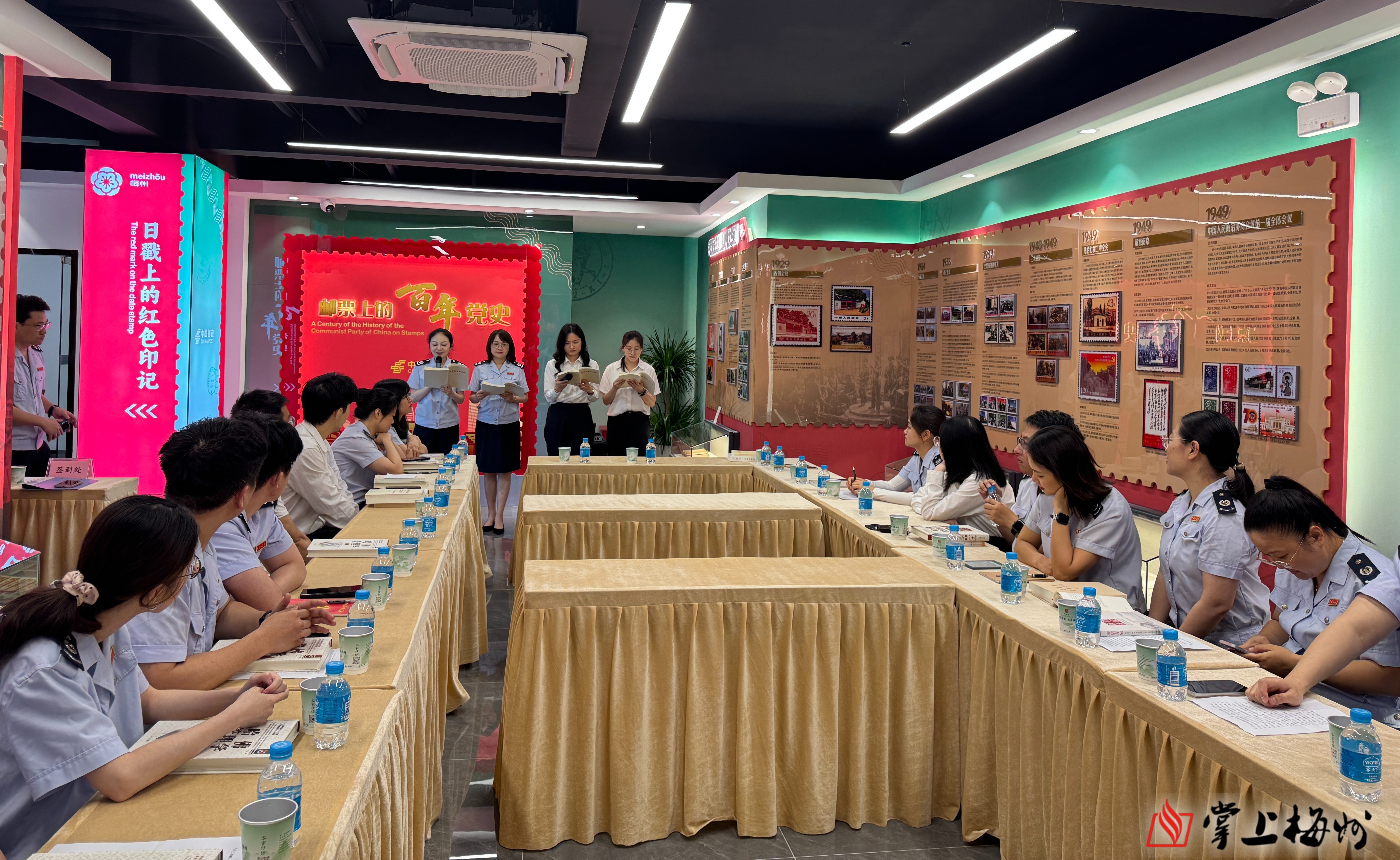 活动前,与会人员共同参观展厅,了解了邮票上的百年党史。市税务局、中国邮政集团有限公司梅州市分公司相关负责同志先后发言,阐述了读书的意义。参与活动的青年们纷纷上台分享自己的读书心得。随后,团市委和文明办的相关负责同志为青年们赠书。