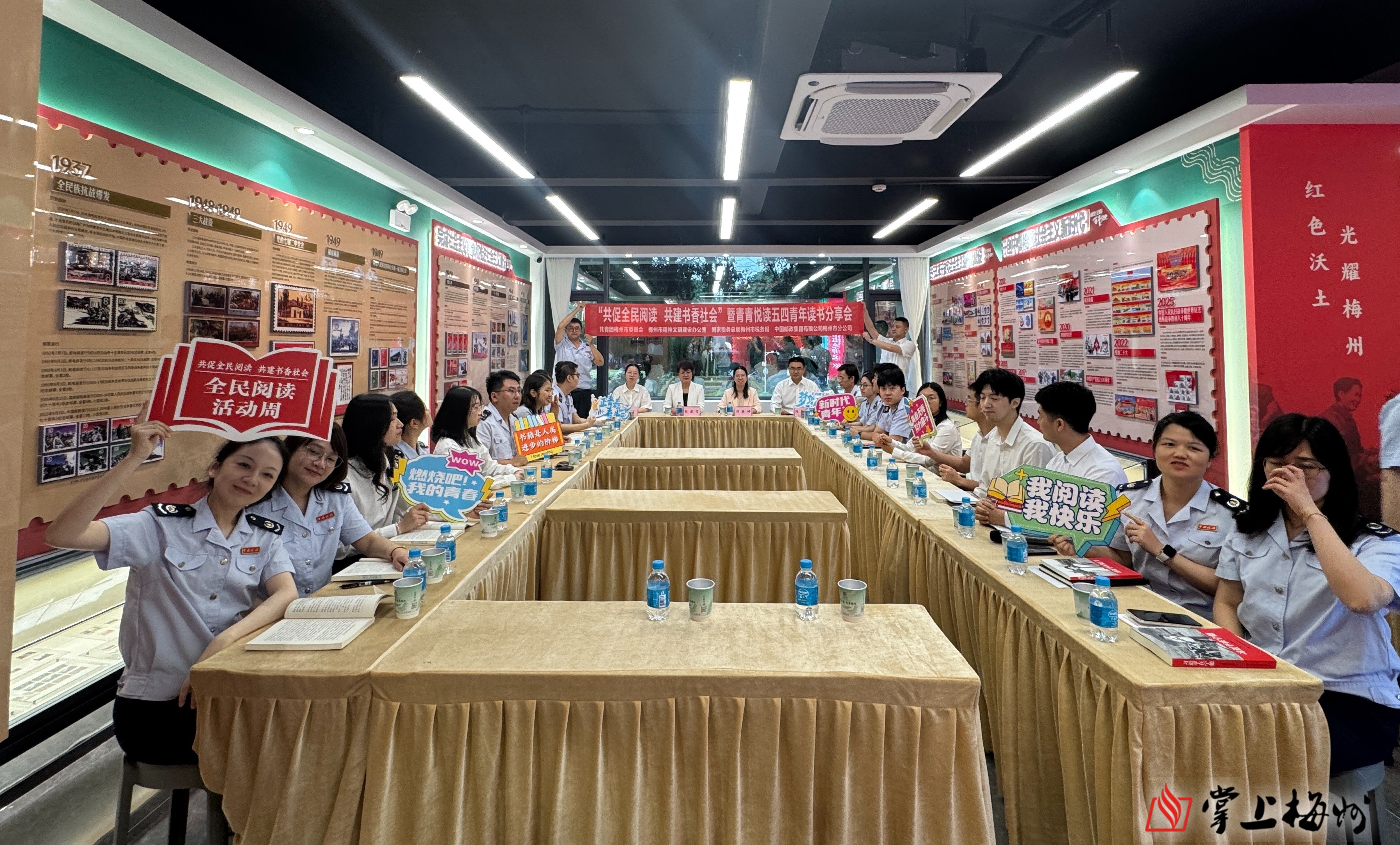 掌上梅州讯 4月23日是世界读书日。当天,“共促全民阅读·共建书香社会”——青青悦读五四青年读书分享会在梅江三路邮政支局暨新时代文明实践点举行。市文明办、团市委、市税务局、中国邮政集团有限公司梅州市分公司相关负责同志,梅州市税务局青年干部代表、中国邮政集团有限公司梅州市分公司青年职工代表、共青团梅州市委员会青年代表参与了活动。