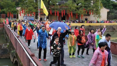 7点30分,市长张爱军宣布梅江区“穿越千年嘉应,情醉诗画梅江”客家村镇银行•第六届磨房百里徒步活动开幕,逾万名徒步爱好者在响亮的鸣笛声中“开走”。