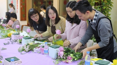 14日晚,梅江区妇女联合会联合梅州明煜实业发展有限公司和梅江区花漾blossomfloral举办梅江区妇女群众花艺培训,活动将分两期开展。