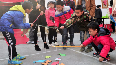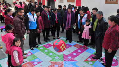 精彩的文艺表演之后,居民们又参与到“欢乐飞行棋”“我们来钓鱼”“指压板传球”等趣味游园活动中。