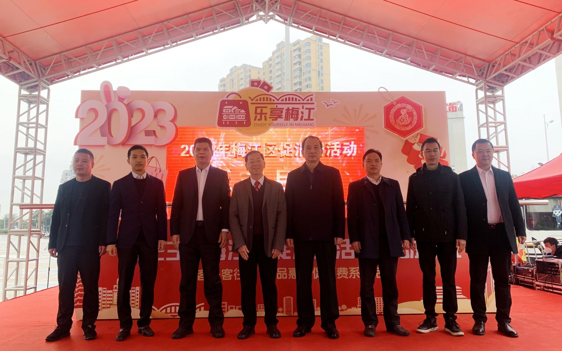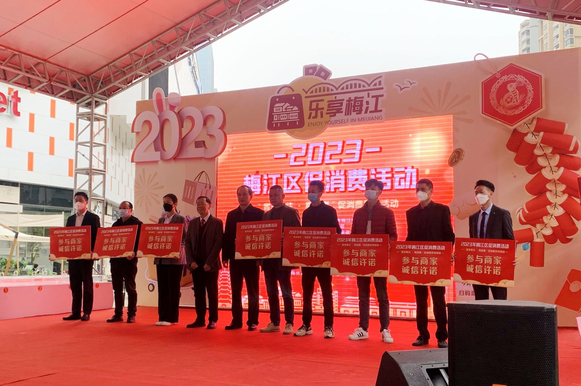 掌上梅州讯 1月9日上午,2023年梅江区促消费活动启动仪式——“客来客往·梅品惠”促消费系列在万达广场举行,梅州市商务局、中国邮政储蓄银行股份有限公司梅州市分行、梅江区科工商务局、梅江区三角镇人民政府、广东梅江控股集团有限公司、梅江区餐饮行业协会等单位相关负责人,企业、商户代表参加活动。