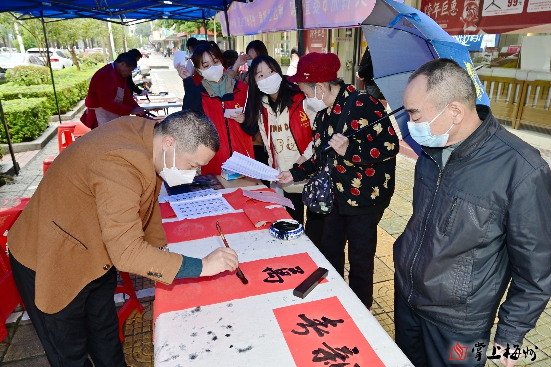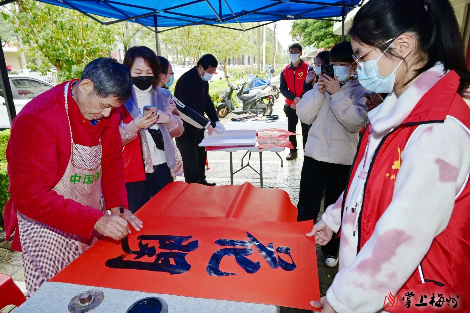 掌上梅州讯 1月10日上午,我们的节日——“翰墨迎春,玉兔送福”迎新春文化活动在梅江区新中社区开展,为市民群众免费书写“福”字和春联,将真挚祝福送到千家万户。