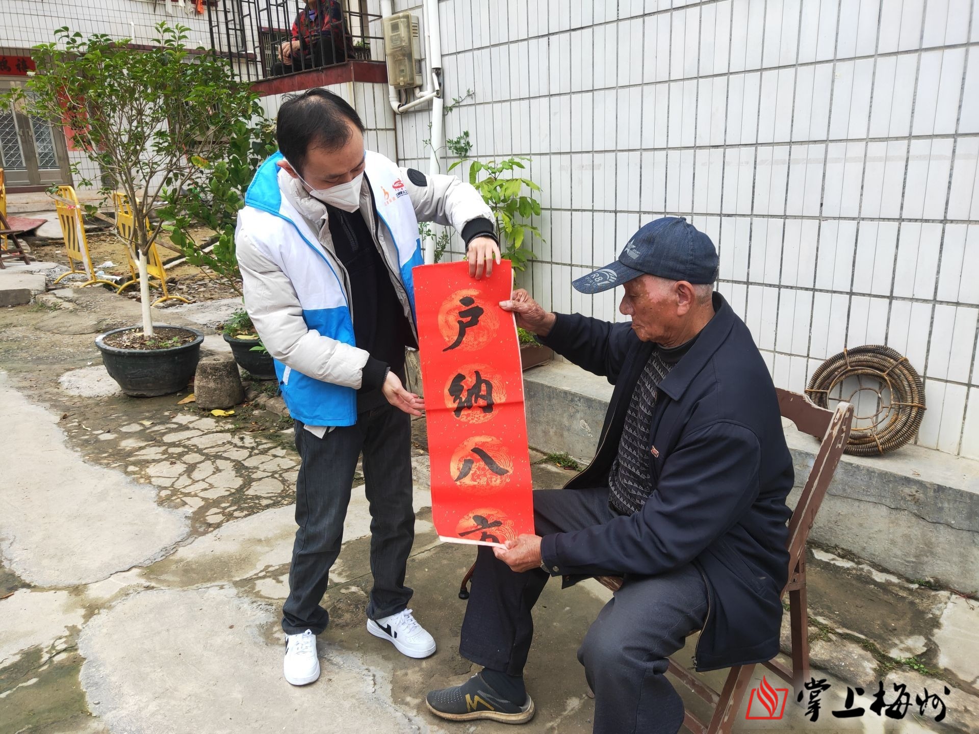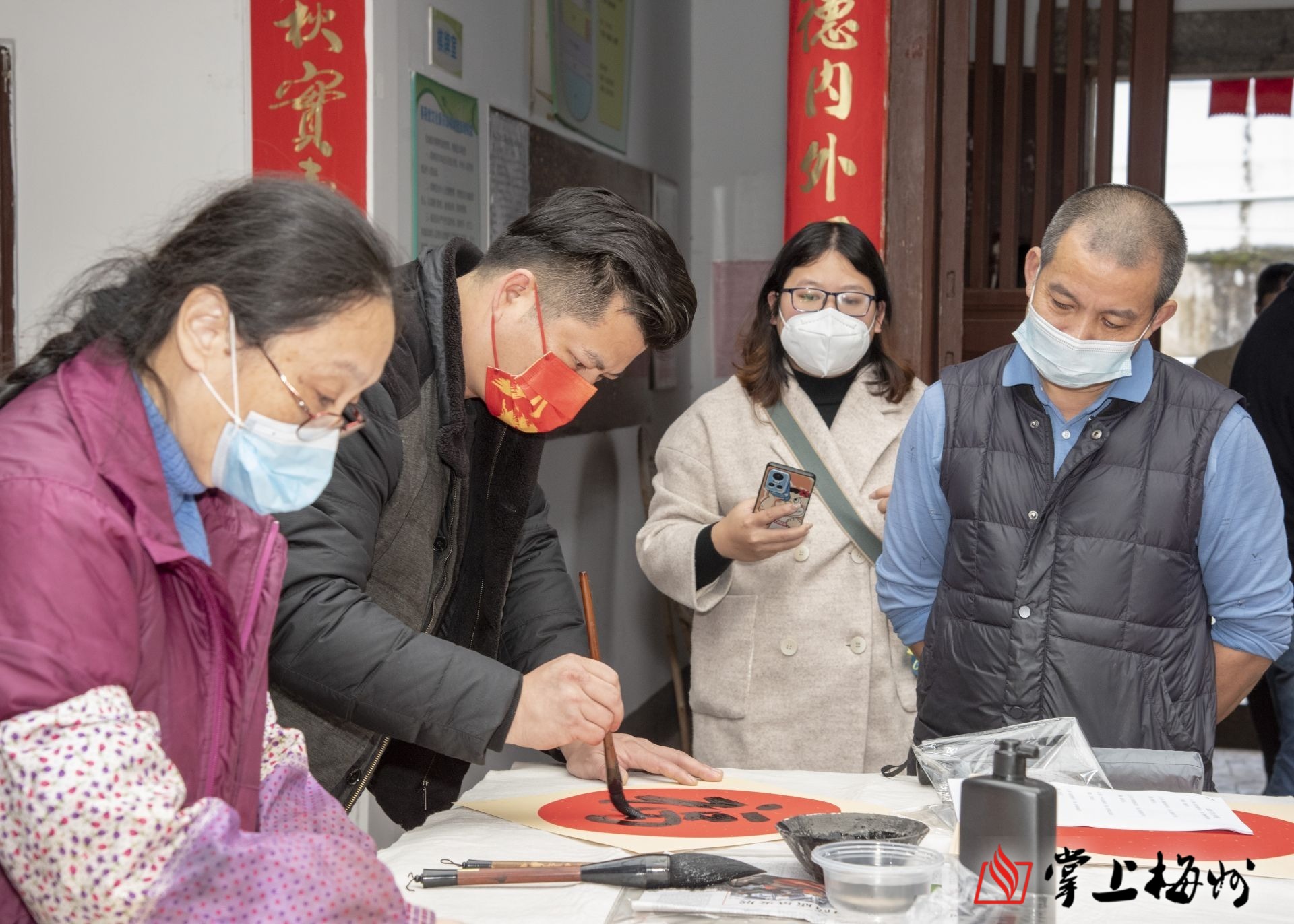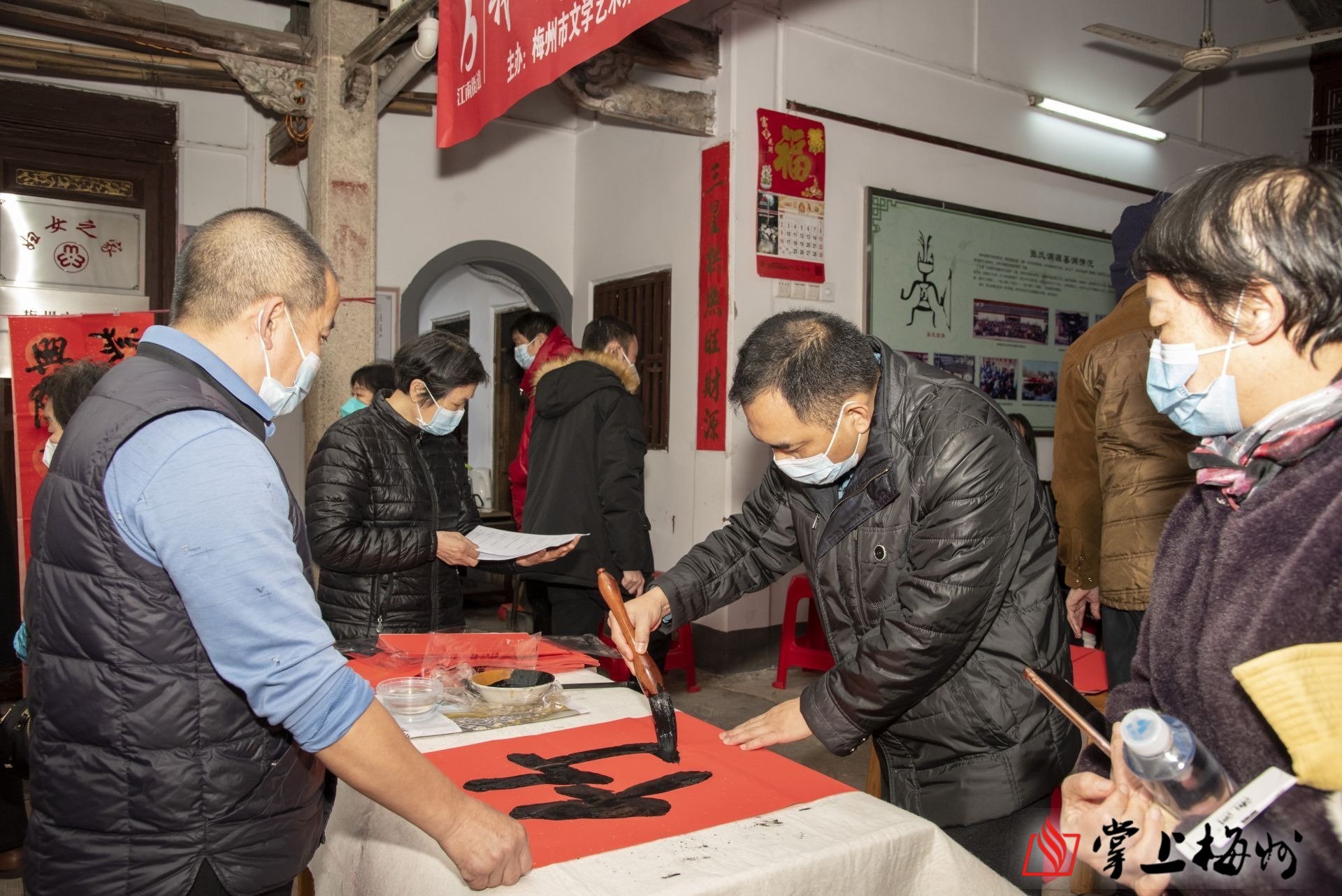 掌上梅州讯 1月10日下午,市文联、市文艺志愿者协会联合榕树塘社区在梅江区榕树塘社区春燕堂开展“我们的中国梦·文化进万家”挥春送福文艺志愿活动,为社区居民营造喜庆祥和的新春氛围。市文联党组成员、副主席吴朝晖,榕树塘社区党委书记朱斌,市文艺志愿者协会副会长、梅州画院副院长罗卉,梅州市文艺志愿者梁远祖、彭胜华、张万航、刘建通、张桂秋等参加活动。