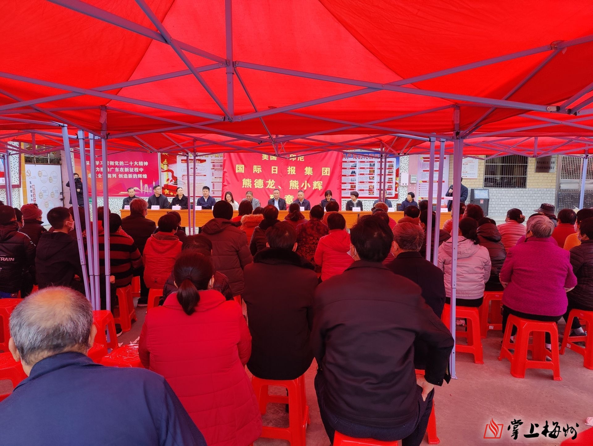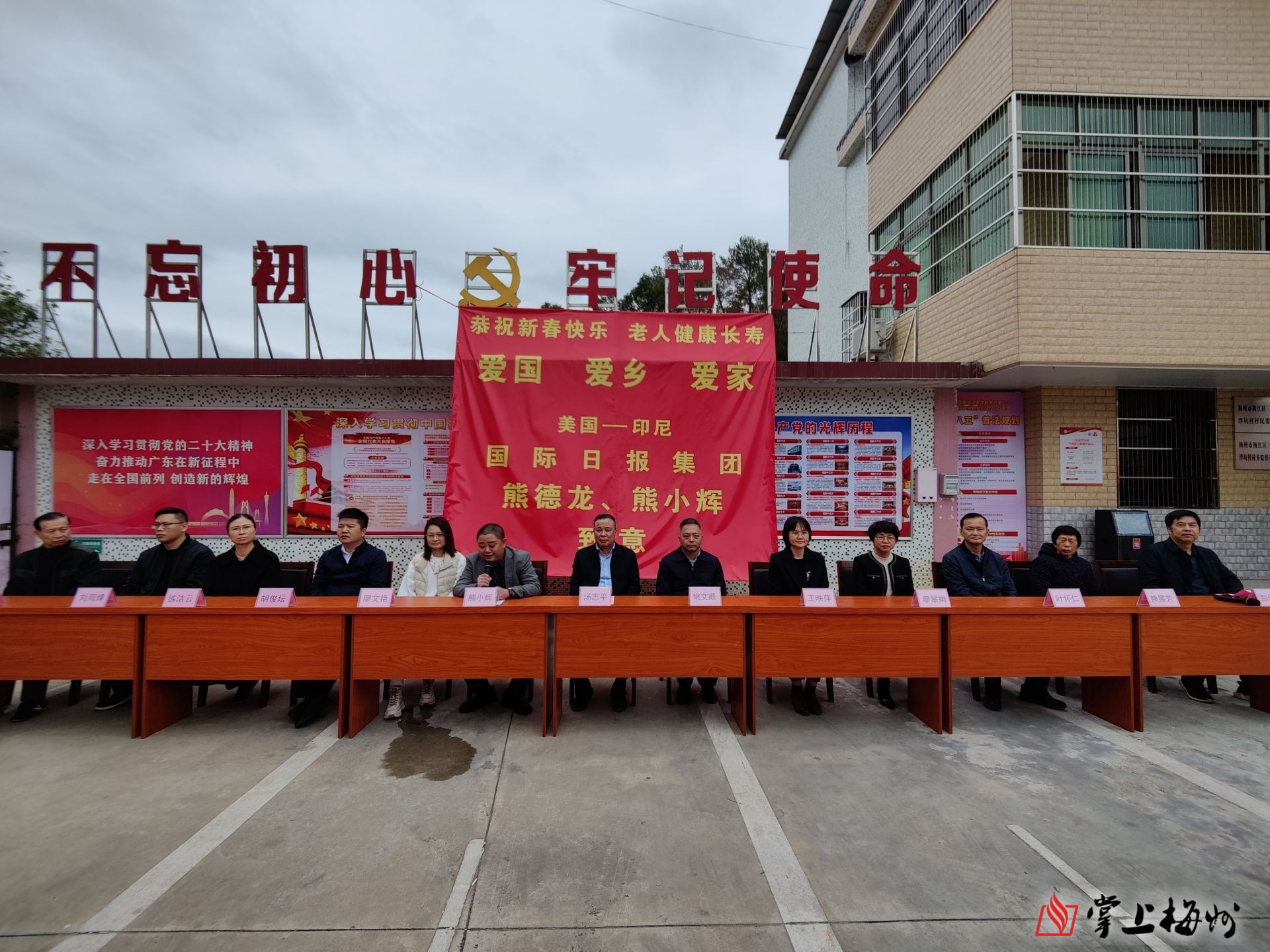 掌上梅州讯 春节将至,侨有大爱。15日下午,梅州市荣誉市民、市侨联荣誉主席、美国•印尼国际日报集团主席熊德龙倡议并出资举办的“尊老敬老”新春慰问活动在泮坑村委会举行,市侨联主席汤志平、梅江区区委常委、统战部部长姚文顺、美国·印尼《国际日报》报业集团副总裁熊小辉、市侨联副主席王映萍、梅江区侨联主席廖翠娟等参加活动。