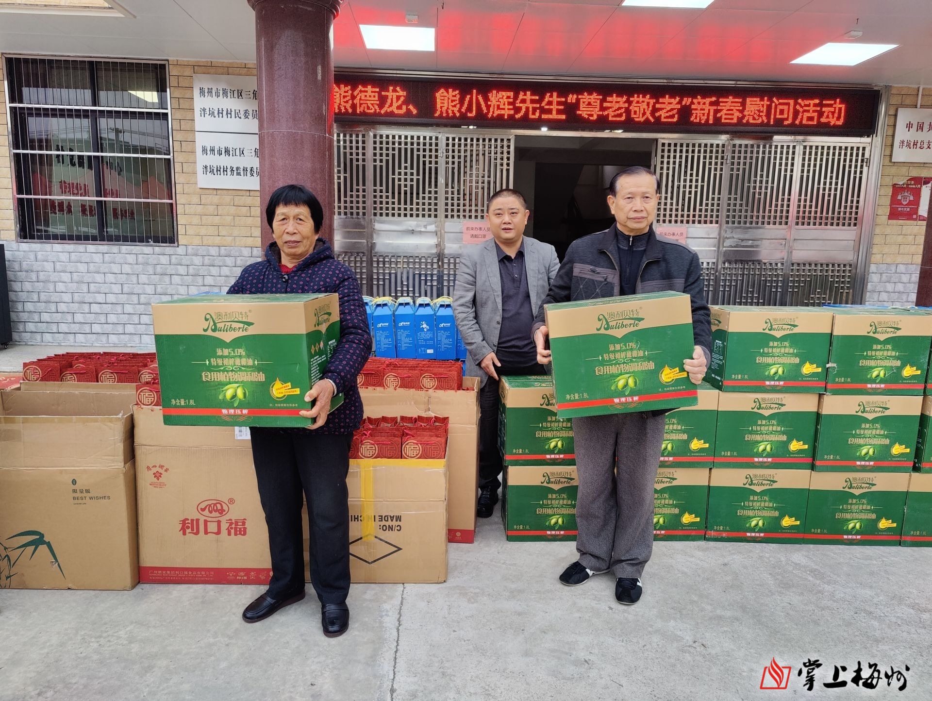受熊德龙委托作为代表参加此次活动的熊小辉,向泮坑村600多位老人家送上手表、食用油、鸡蛋等慰问品,以及慰问金,并向父老乡亲送上新春祝福和美好祝愿。
