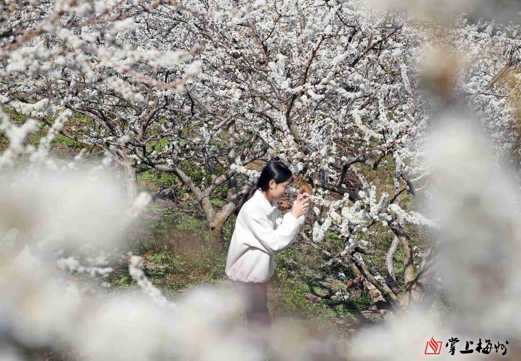 漫山的李花相继绽放,吸引游客驻足观赏。
