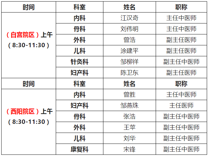 二、地点:西阳镇卫生院(西阳院区、白宫院区)