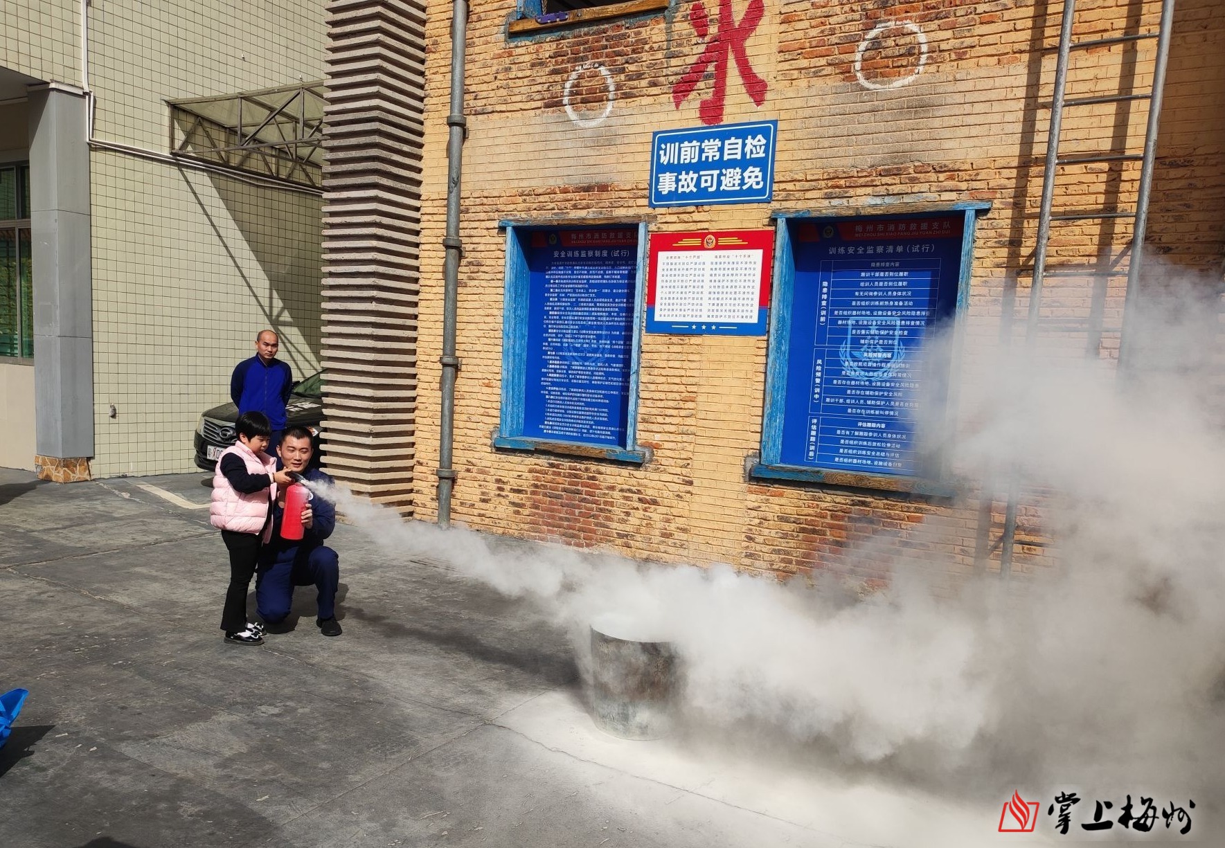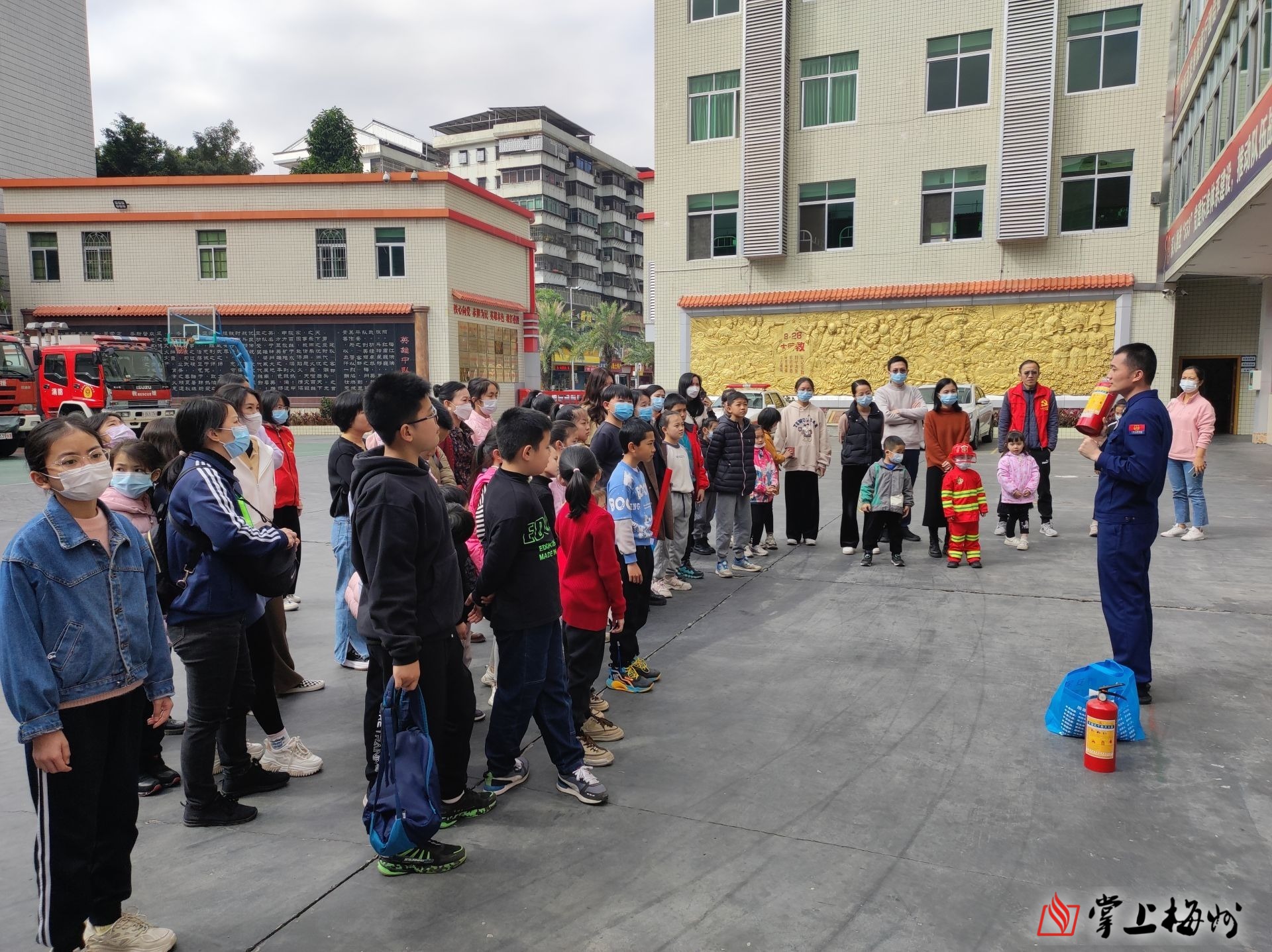 掌上梅州讯 2月18日上午,“亲子学消防,共建平安家”消防安全普法活动在梅江区金山消防救援站举行,共有25对亲子家庭参与活动。