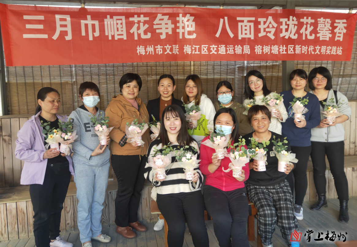 掌上梅州讯 阳春三月,花香四溢,在第113个国际三八妇女节来临之际,为体现对社区女性的关怀,为丰富社区女同胞的文化生活,梅江区江南街道榕树塘社区开展“三月巾帼花争艳·八面玲珑花馨香”三八妇女节主题活动。