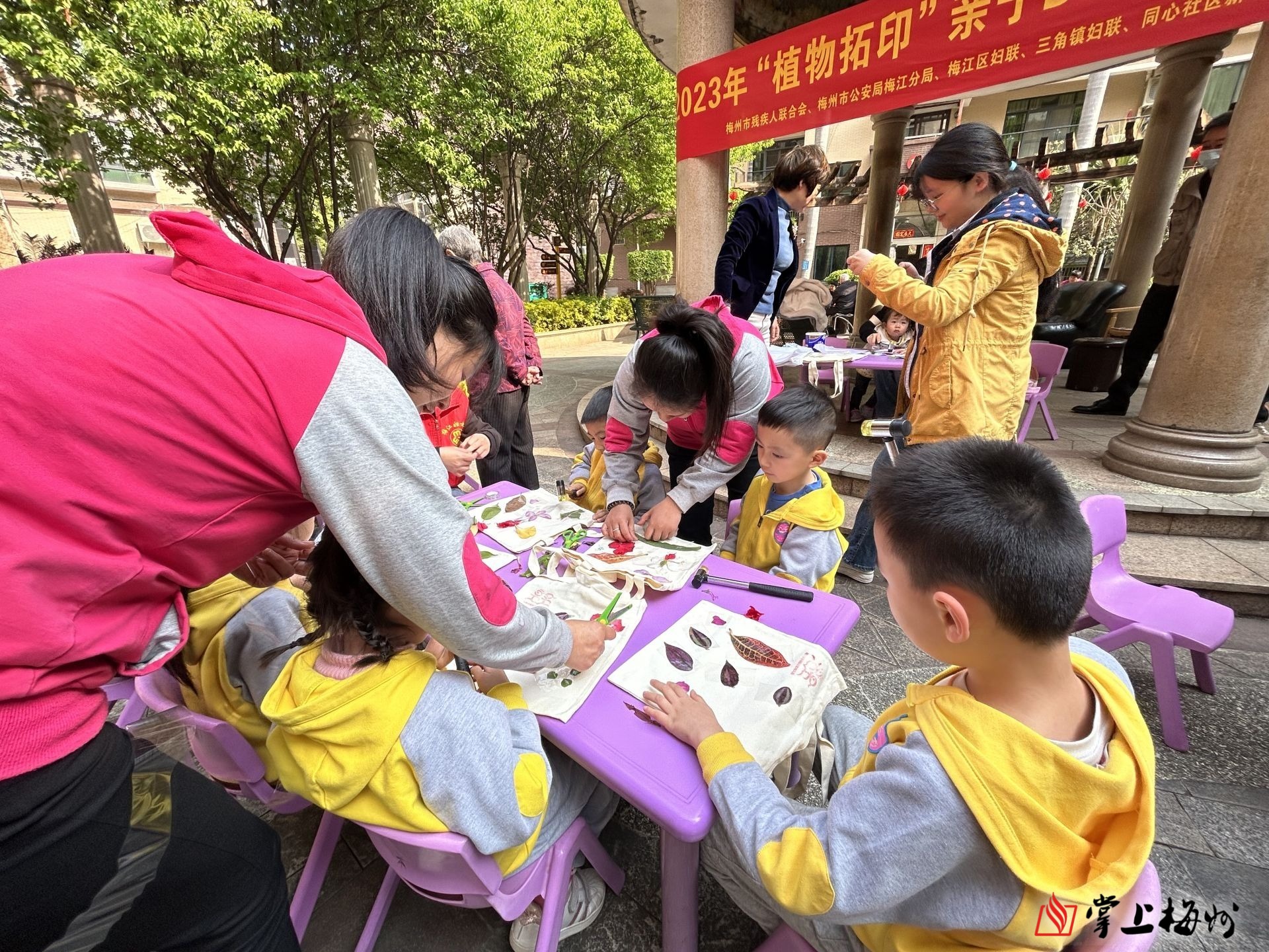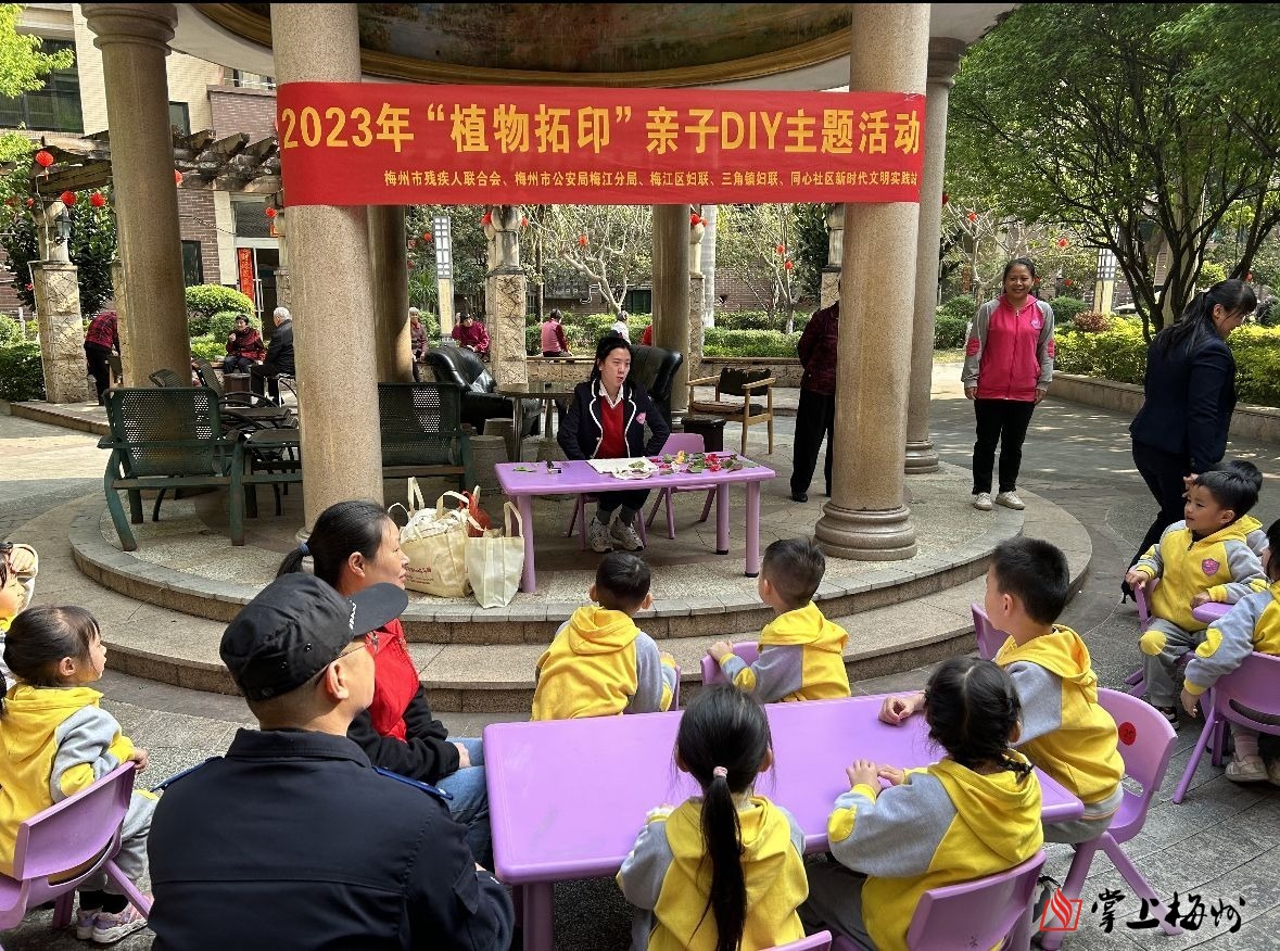 掌上梅州讯 3月8日上午,梅江区三角镇同心社区新时代文明实践站联合梅州市残疾人联合会、市公安局梅江分局、区妇联、三角镇妇联、云彩幼儿园开展“植物拓印”DIY亲子实践活动,共赴一场植物探秘之旅。
