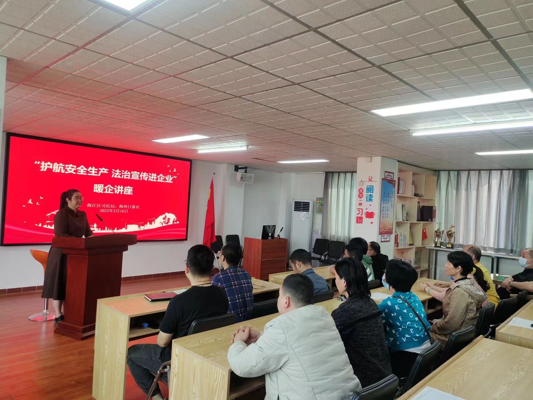 掌上梅州讯 3月16日,梅江区司法局和梅州日报社联合在梅州报业印务有限公司开展“护航安全生产 法治宣传进企业”暖企讲座,进一步普及安全生产法律法规和安全知识,提高企业职工安全意识。讲座由法律援助处律师邓燕红授课,公司管理岗干部、一线工人共60多人参加。