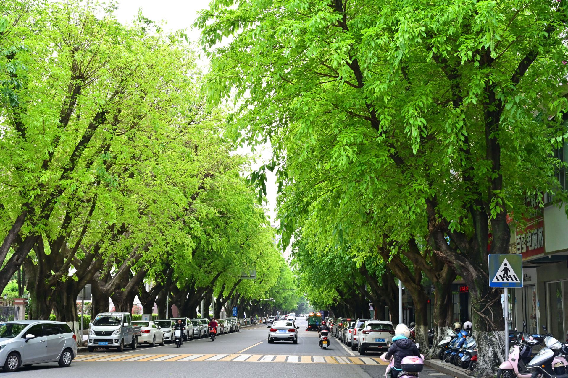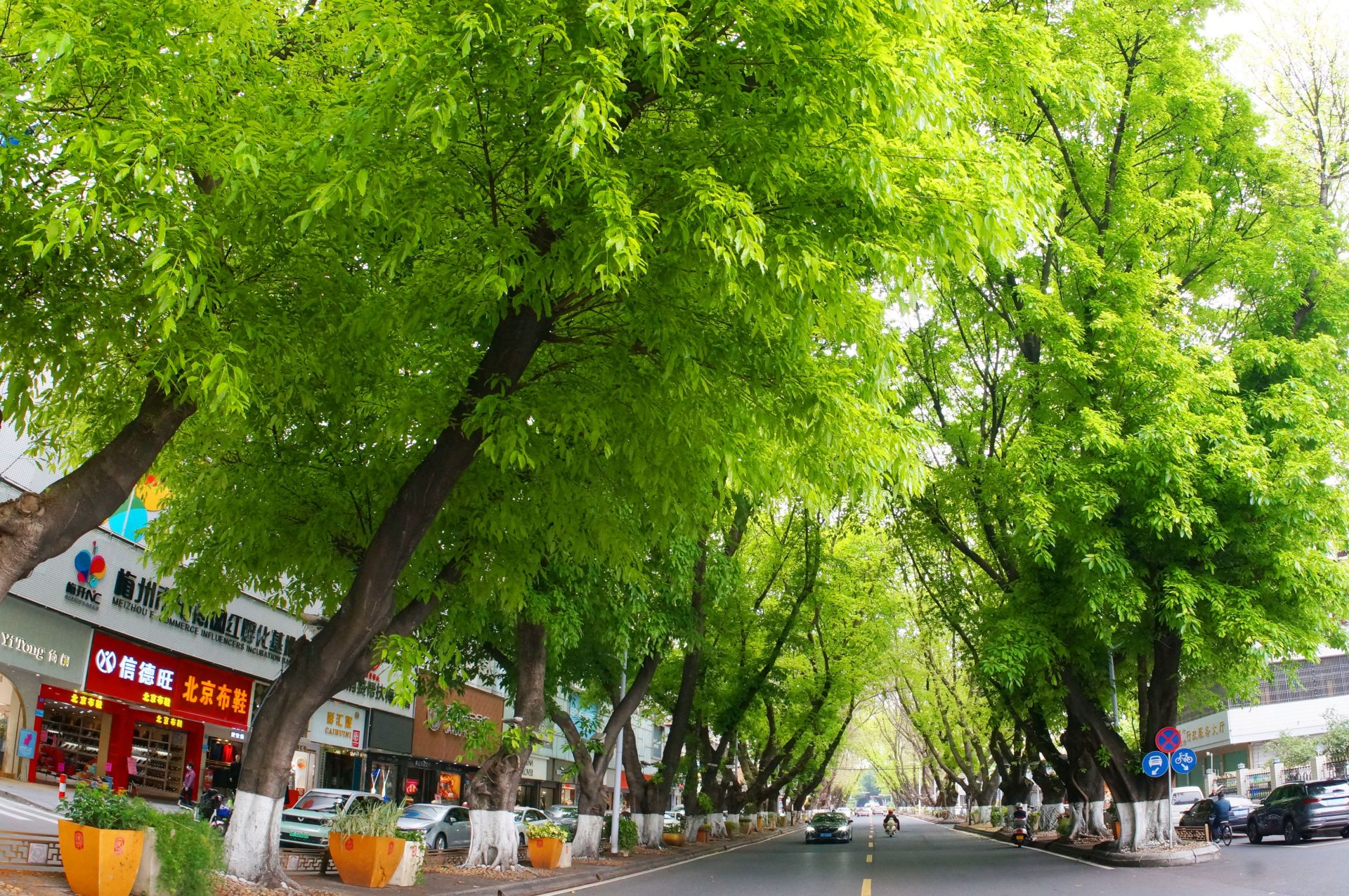 四月的梅城春风和煦,漫步在梅江一路、二路等路段,只见路旁的大树枝繁叶茂,长满了娇嫩欲滴的绿叶。一片挨着一片的绿叶,为行人编织出一片嫩绿色的天空,让人真切感受到春日里蓬勃盎然的生机。“嫩绿色是春天最美的颜色,每次看到满树嫩绿的树叶,总觉得心旷神怡、活力满满。”家住百花洲的陈女士说。