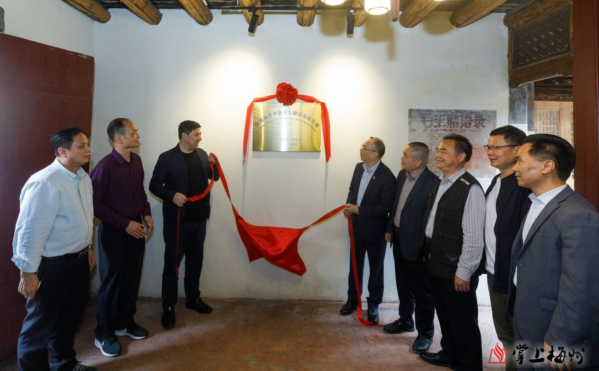 客属海外华侨华人联谊交流基地在友恭楼揭牌成立。