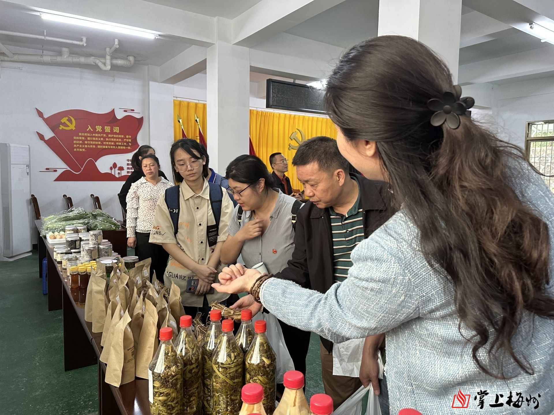 “这个药材好像是第一次见,闻起来很香。”“梅子酒尝起来很清甜,具有独特的口感。”……日前,暨南大学教师职工和港澳台侨学生走进上村村,在村委会的农产品“小卖场”里,大家纷纷驻足品尝了解各式各样农产品的情况,挑选着自己心仪的产品。“这次来到上村村交流学习,发现梅州的农产品很是丰富,我购买了五指毛桃和蜂蜜带回家尝尝。”暨南大学网络中心工作人员唐译蓉告诉记者,她将会把梅州的优质农产品推荐给更多亲朋好友。