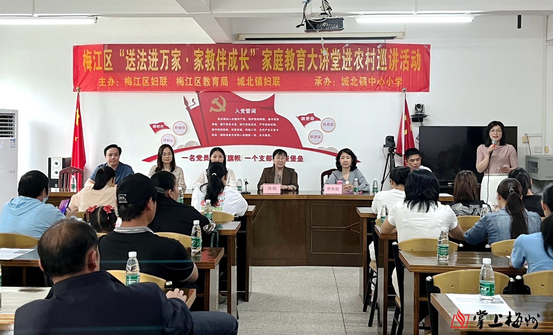 掌上梅州讯 4月13日,梅江区妇联联合区教育局、城北镇中心小学到干光村开展“送法进万家·家教伴成长”家庭教育进学校、进农村巡讲活动。梅江区教育局副局长饶嫣、区妇联副主席李真珍、学校相关负责人及学生家长共40多人参加活动。