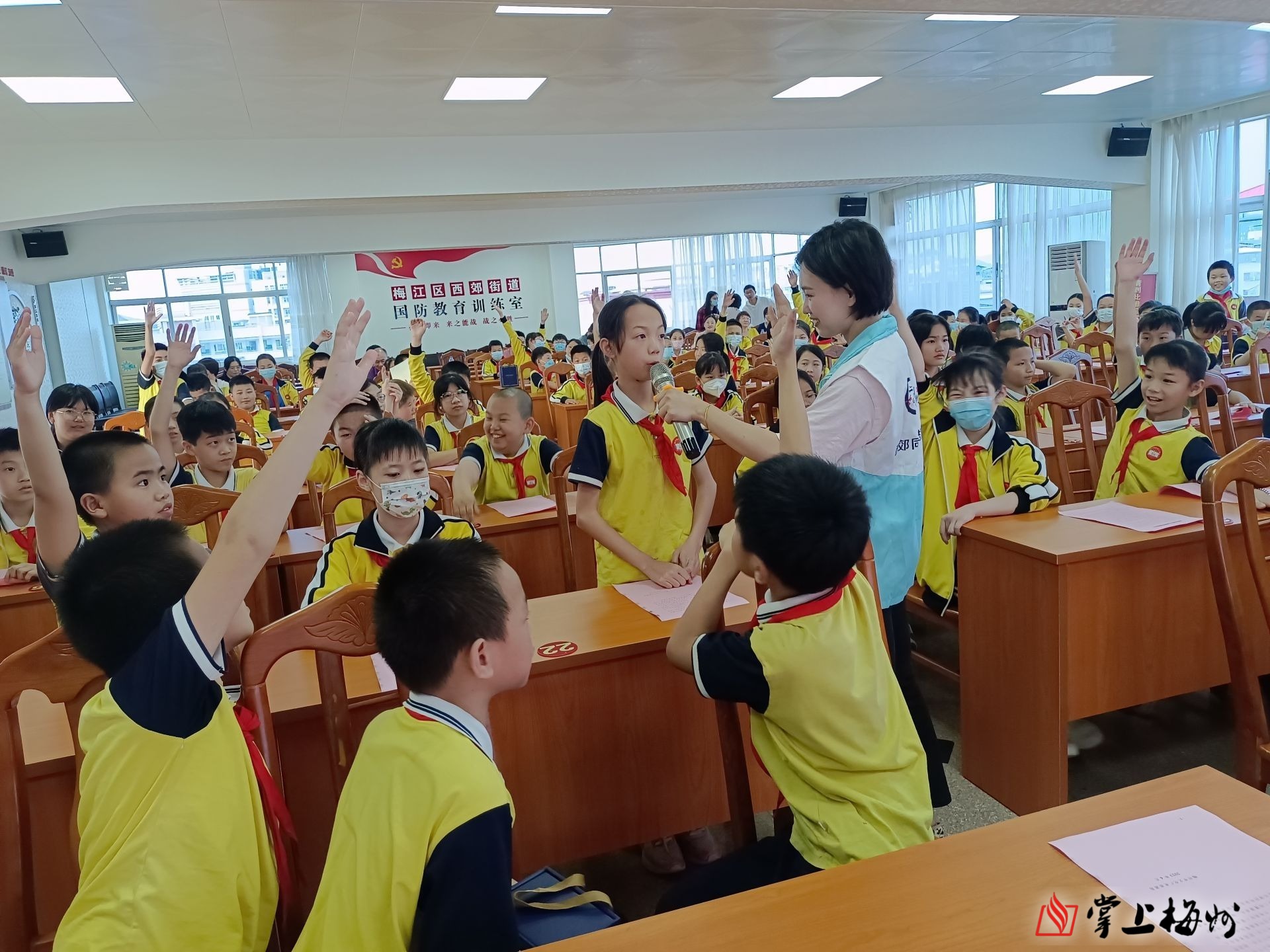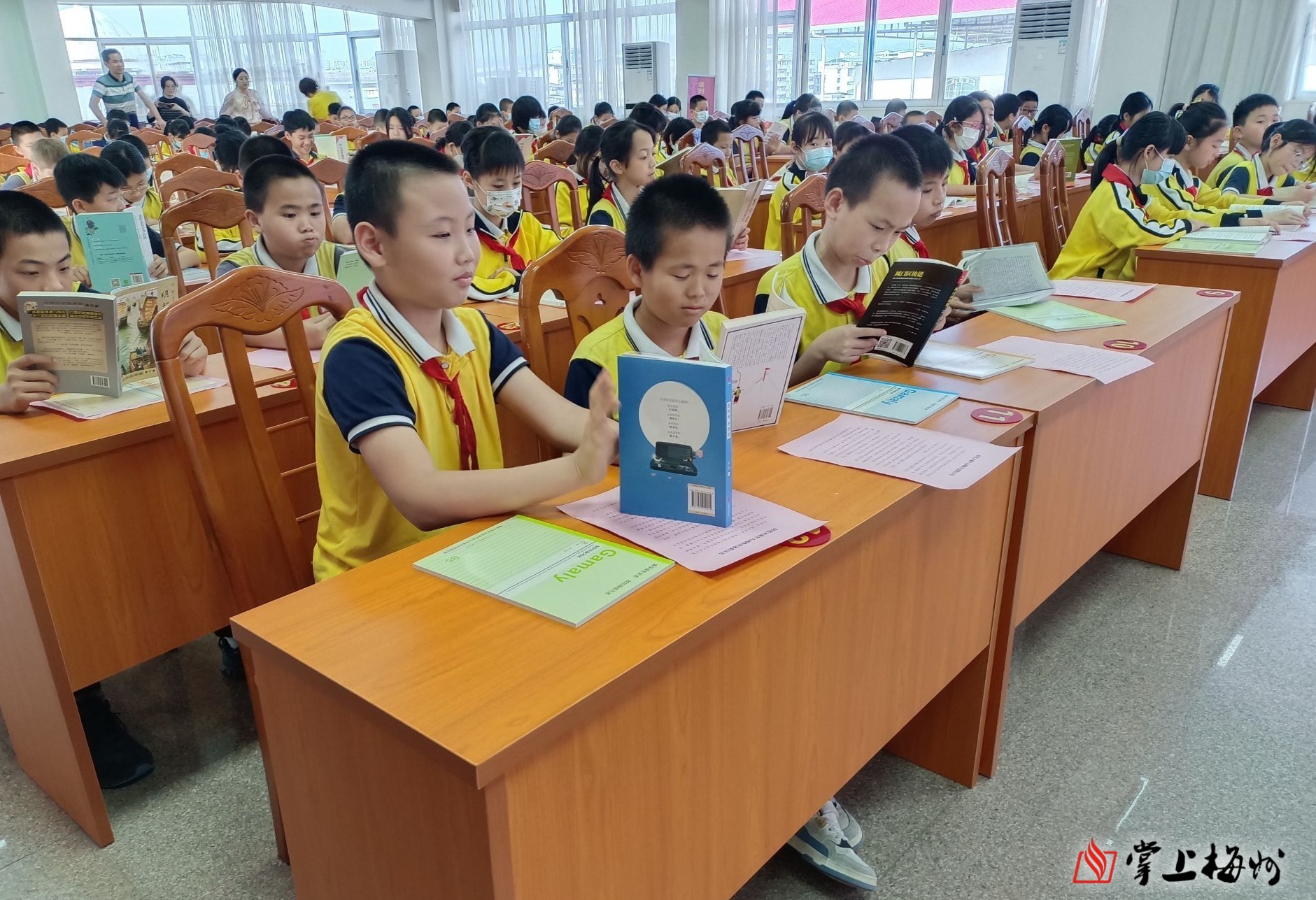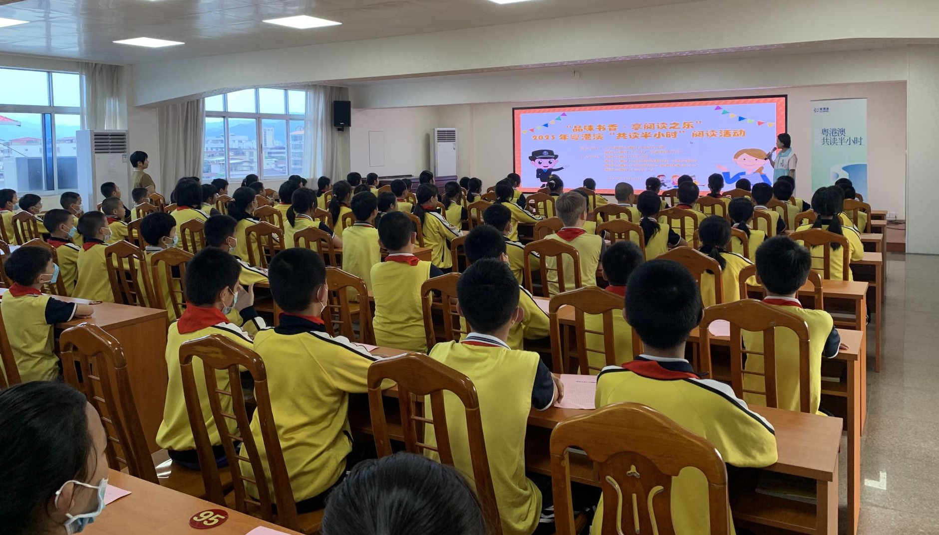 掌上梅州讯 20日下午,梅江区西郊街道联合市文化广电旅游局、区委宣传部、区新闻出版局、区委网信办开展以“品味书香·享阅读之乐”为主题的2023年粤港澳“共读半小时”活动,乐育小学100多名师生参加活动。