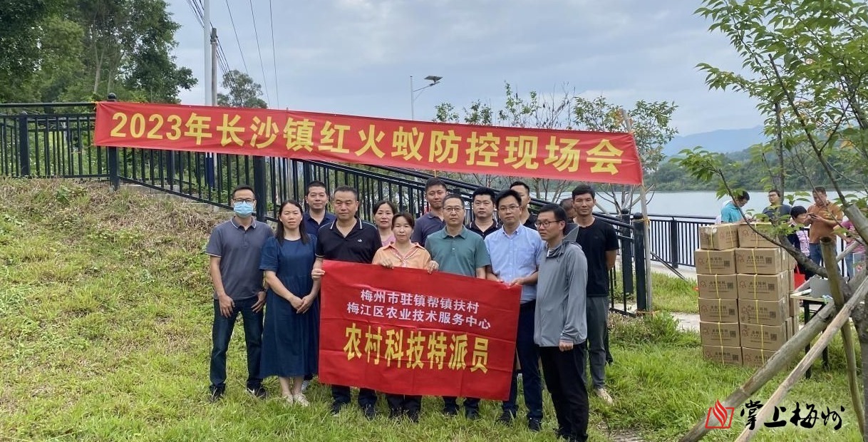 掌上梅州讯 日前,梅江区农业技术服务中心农村科技特派员团队在长沙镇澄滩村开展2023年红火蚁防控现场培训会。区、镇、村干部,企业负责人,农户等共50多人参加了现场会。
