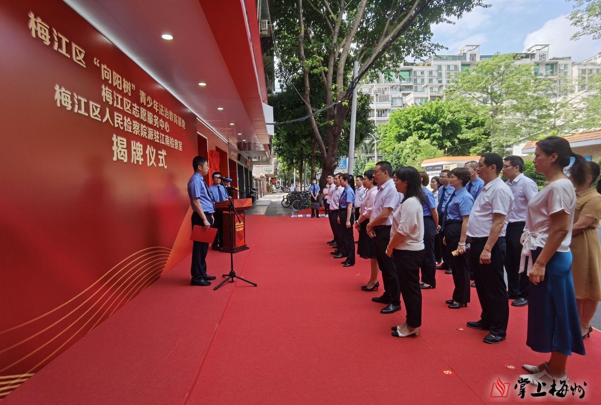 掌上梅州讯 26日下午,梅江区“向阳树”青少年法治教育基地揭牌。市检察院党组书记、检察长吴文志等参加揭牌仪式。