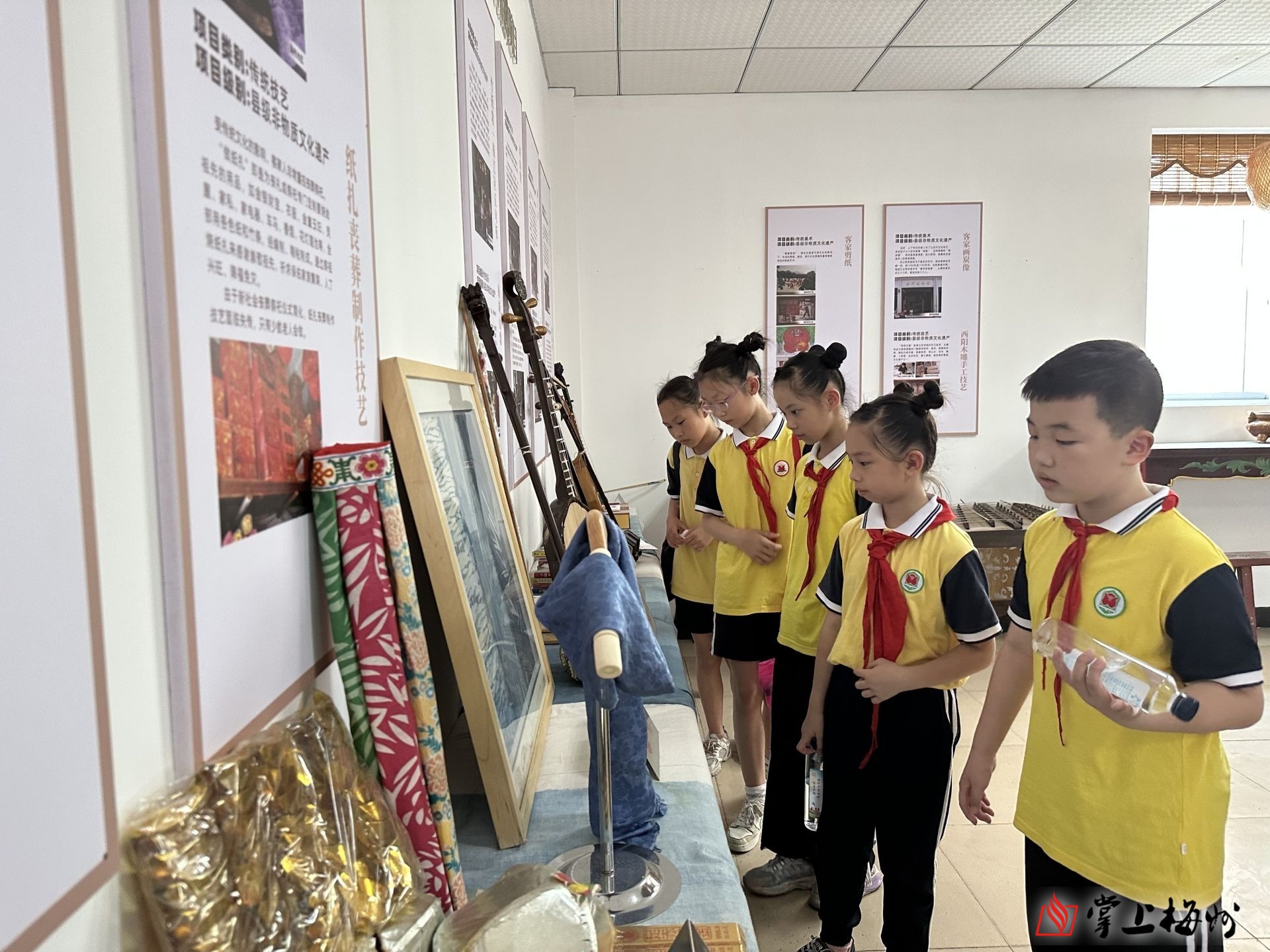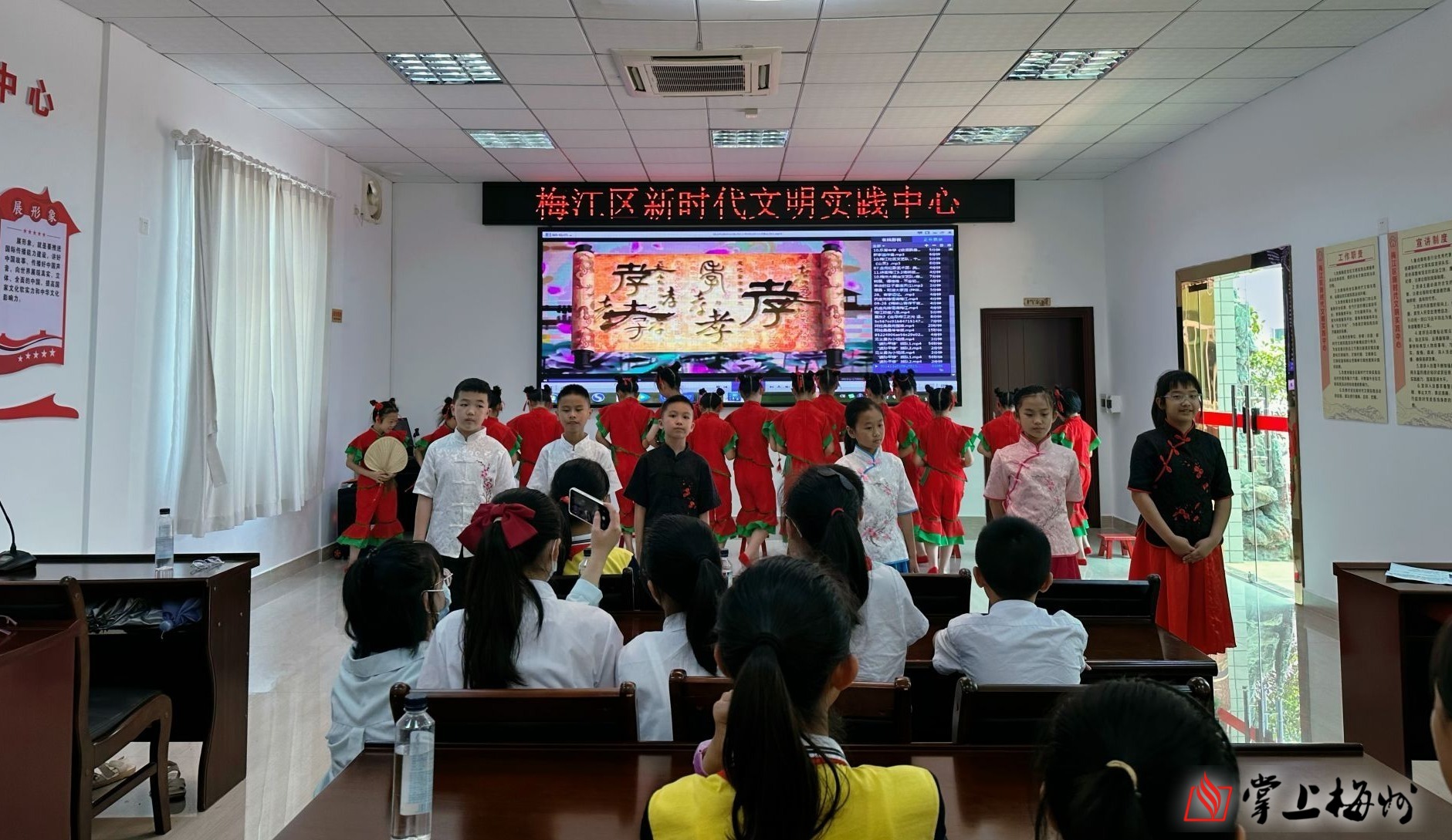 活动现场,金山小学文艺队演绎童谣歌伴舞《劝孝顺》,504班表演诗朗诵《读中国》,金山小学优秀学生代表刘静、梅州市新时代好少年谢宇威分别分享自己的成长事迹。学生们还参观了梅江区非物质文化遗产展示厅,深入学习了解客家美食、客家文艺、传统手艺、生活习俗等非遗项目,在感受传统文化魅力的同时,汲取前进的力量。“参观后不仅开阔了眼界,对我了解客家的历史文化和民俗文化都有很大的帮助,我为家乡深厚的历史文化底蕴感到骄傲。”金山小学学生张晓燕说。