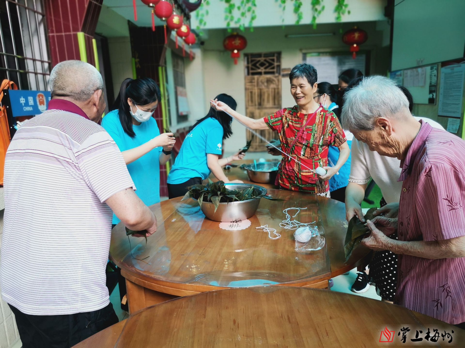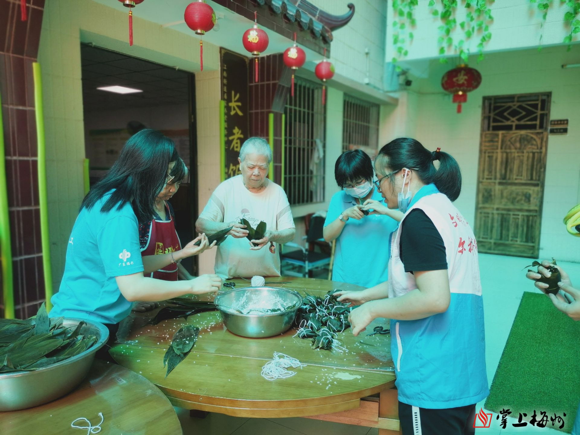 掌上梅州讯 为弘扬中国传统文化,营造浓厚的节日氛围,在端午佳节来临之际,梅江区江南街道凤尾社区新时代文明实践站、路心社区新时代文明实践站联合各自创文挂点双到单位及江南街道新时代文明实践所、江南社工站,于6月20日上午在梅新老年公寓开展“我们的节日——粽叶飘香迎端午 艾意浓浓带回家”端午节主题活动。