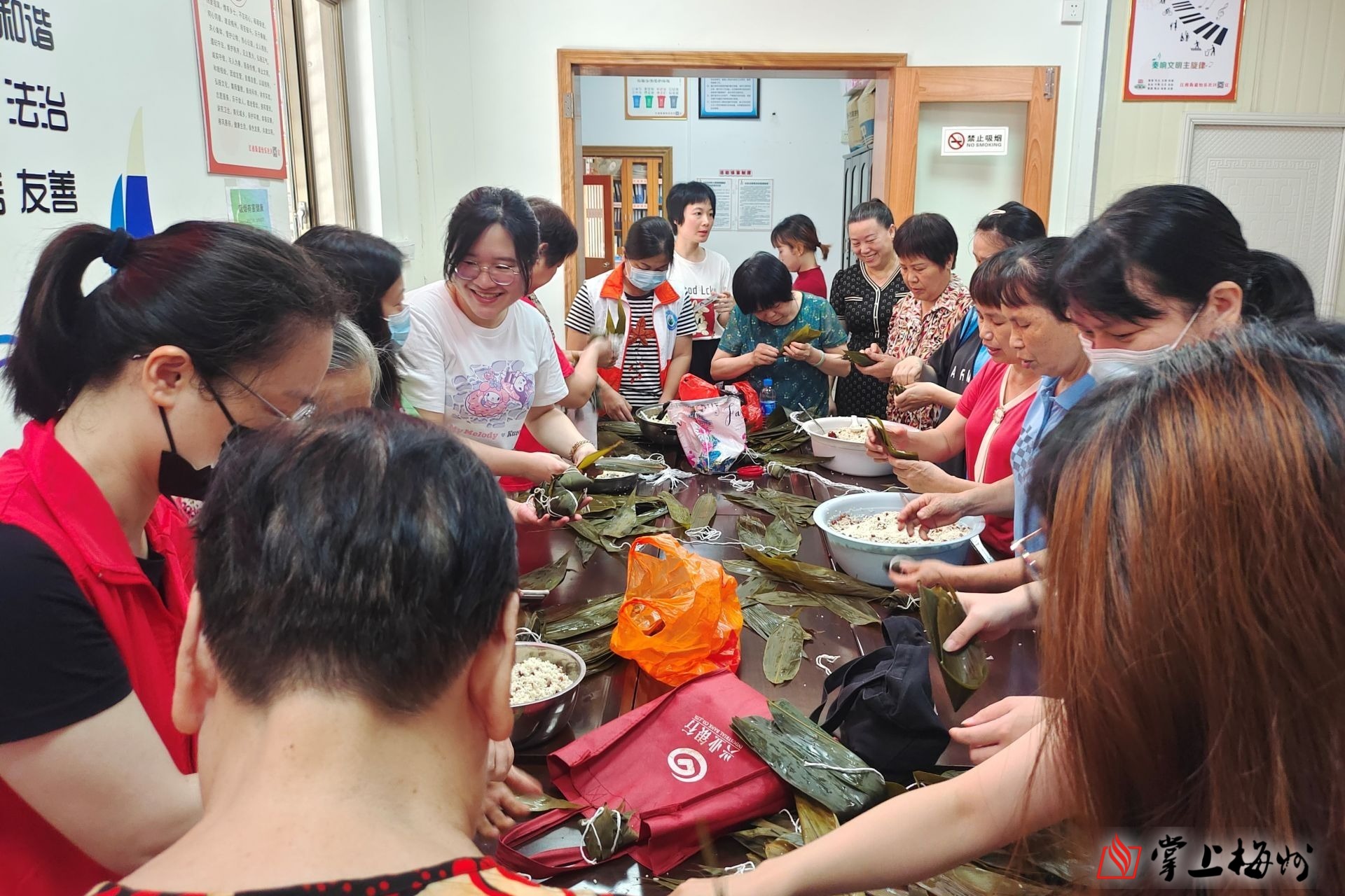 掌上梅州讯 一年一端午,一岁一安康。6月21日上午,在梅江区江南街道怡乐社区党群服务中心,“我们的节日——粽叶飘香,品味端午”主题活动在此举行,社区工作人员、社工、社区居民等热热闹闹地聚在一起,包粽子、扎菖蒲艾叶,其乐融融迎接端午佳节的到来。据介绍,该活动由梅州市工业和信息化局、梅江区就业服务中心、怡乐社区新时代文明实践站、江南街道社工站联合举办,旨在引导社区居民进一步了解传统节日、认同传统节日、喜爱传统节日、过好传统节日,促进人与自然和谐相处,增强社区的凝聚力。