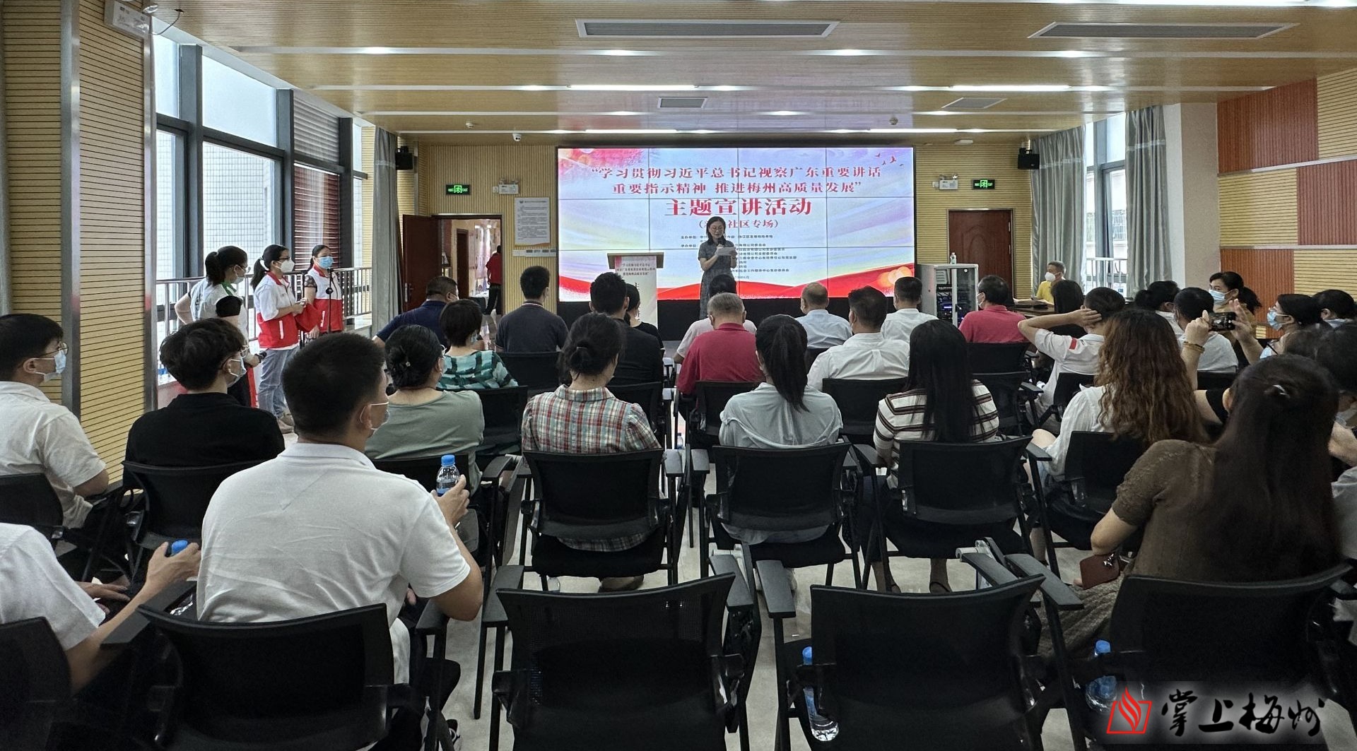 掌上梅州讯 6月21日,“学习贯彻习近平总书记视察广东重要讲话重要指示精神 推进梅州高质量发展”主题宣讲活动(新中社区专场)在梅江区青少年文化宫举办。市委宣传部、市委宣传部讲师团、梅江区委宣传部、共青团梅江区委、梅江区青少年文化宫、江南街道办有关负责人及当地干部群众近50人参加。