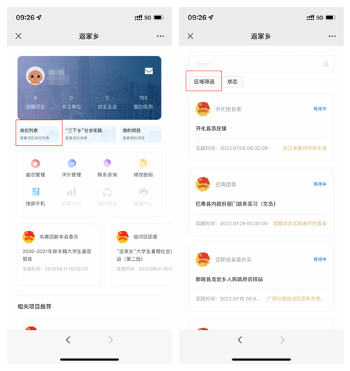第三步,登录成功后点击“岗位列表”,点击“区域筛选”。