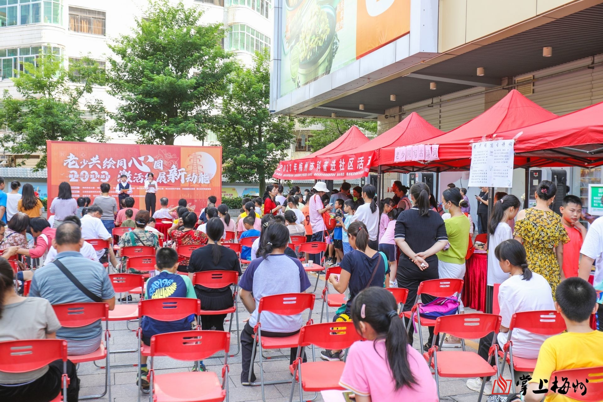 掌上梅州讯 7月20日上午,“老少共绘同心圆,激活发展新动能”梅江区江南街道红光社区2023暑期三百系列活动在客都汇广场举行。