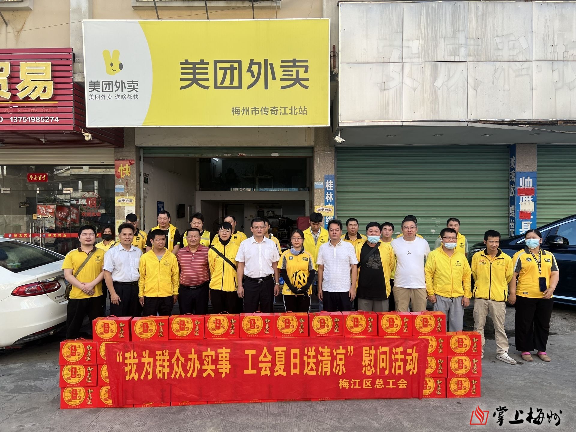 掌上梅州讯 7月26日,梅江区总工会组织开展2023年“夏送清凉”慰问活动,区领导王增文、曾江林参与活动,为奋战在高温一线的基层职工送清凉、鼓干劲。
