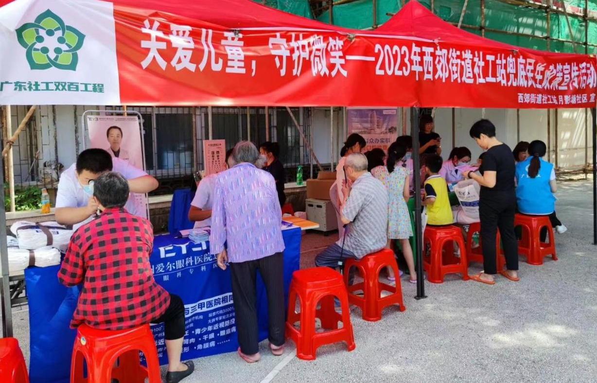 活动现场,西郊街道社工和社区党员志愿者通过派发宣传单以及“你问我答”等形式为社区居民详细讲解城乡低保、临时救助、医疗救助等相关政策和救助申请办理程序,全面协助符合政策条件的困难群众申请社会救助,做到应保尽保,为困难群体兜实保障底线。同时以此为契机,对现场群众进行防溺水安全知识宣传,提高辖区群众的防溺水安全意识,增强未成年人自我保护能力。此外,街道社工站、月影塘社区还联动泽山口腔、爱尔眼科为社区居民提供便民义诊服务,助力双百蓝社工和社区服务宣传,营建多元共治共享社区治理新格局。