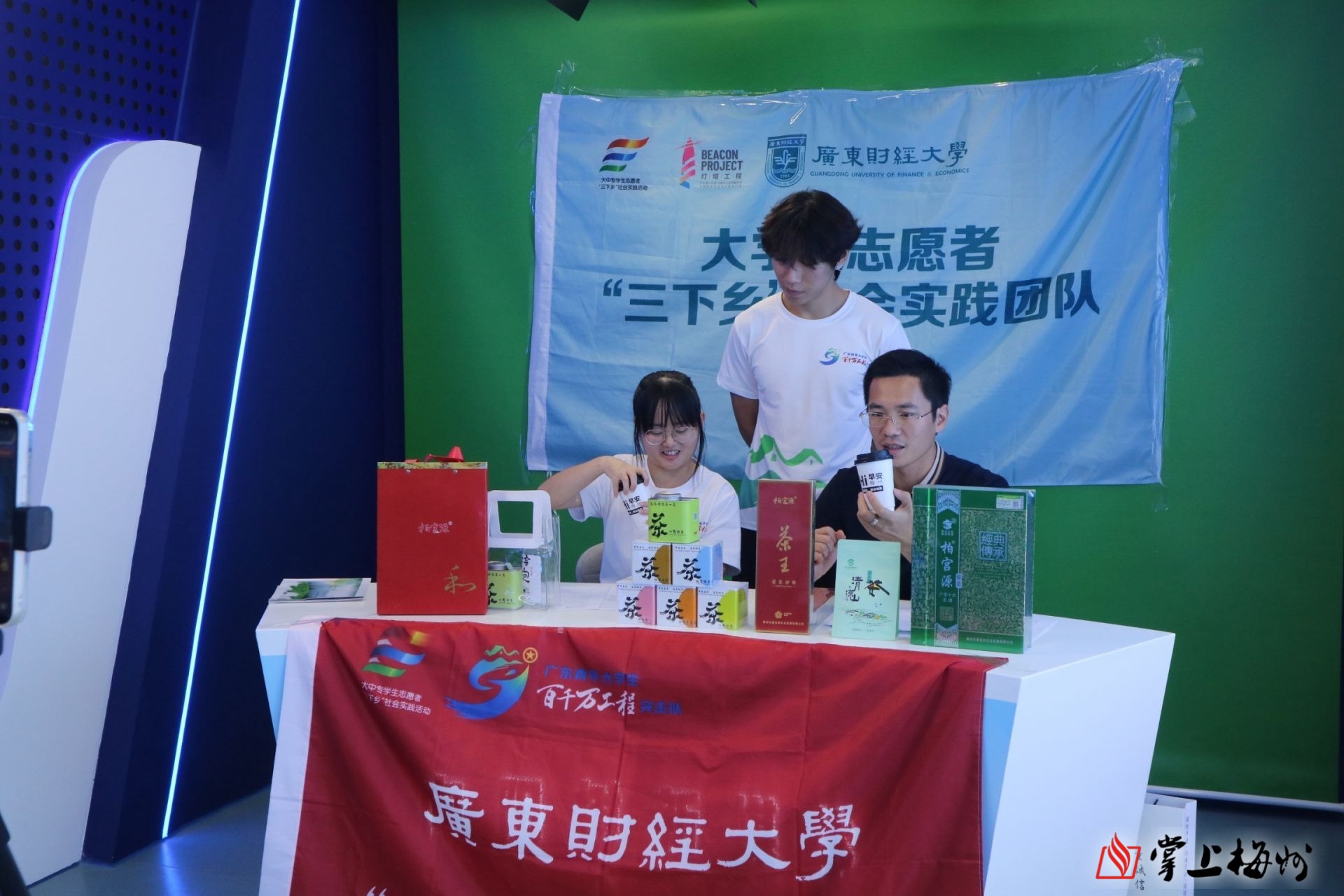广东财经大学“茶言巧语”实践团队成员化身主播推介茶叶。