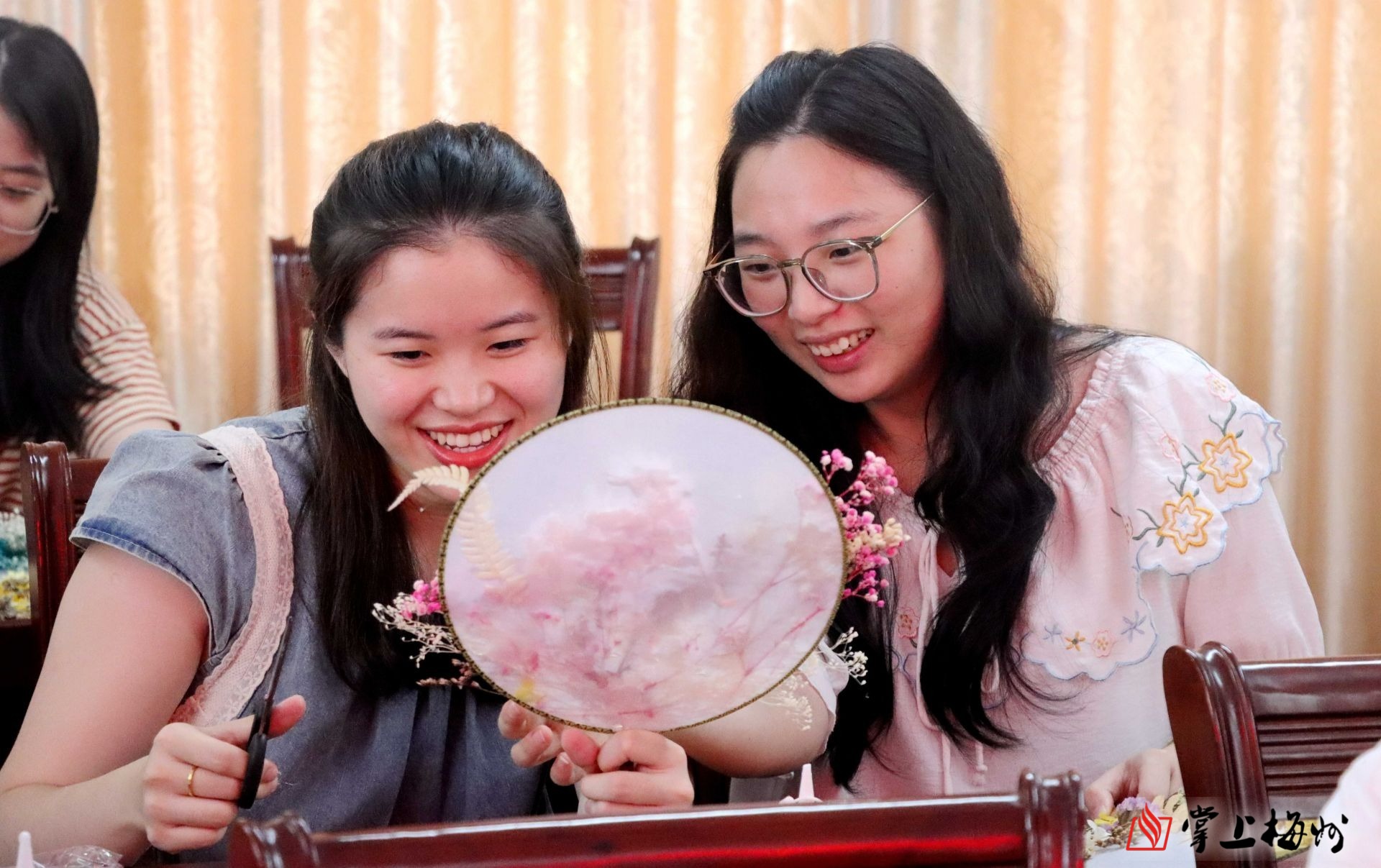 团扇寓意着团圆美满。在工作人员的指导下,活动参与者们发挥自己的想象,用精心准备好的各色干花等各类素材,在团扇上构图,细心粘贴、彩绘,在一双双巧手的搭配下,各类配饰与扇子完美融合,制成了独一无二的艺术品。大家纷纷表示,活动既有趣,又有文化传承意义。