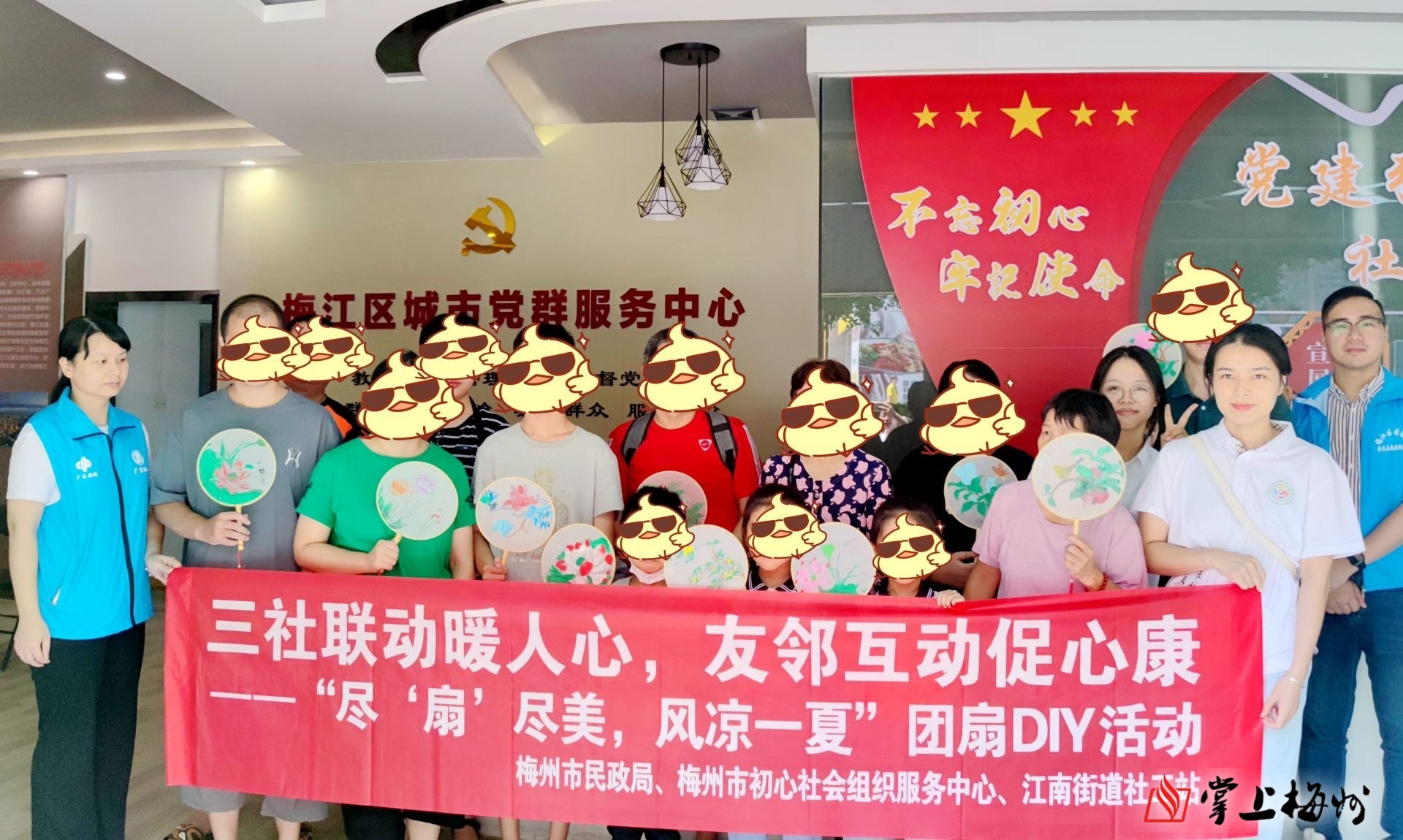 掌上梅州讯 2023年8月25日是全国第七个残疾预防日,在预防日来临之际,由梅州市民政局的指导,梅江区精神障碍社区康复中心联动梅江区司法局、江南街道办、江南街道社工站开展的“三社联动暖人心,友邻互动促心康——尽‘扇’尽美,清凉一夏团扇DIY活动”在梅江区江南街道社工站举办,12名梅江区精神障碍康复者及家属参加活动。