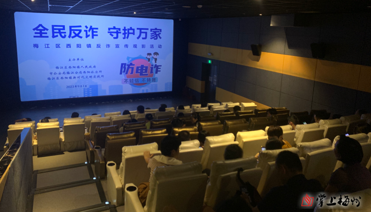 掌上梅州讯 9月1日晚,梅江区西阳镇人民政府、市公安局梅江分局西阳派出所、梅江区西阳镇新时代文明实践所联合开展“全民反诈 守护万家”反诈宣传观影活动,组织镇村干部、派出所民警等85人集中观看反诈题材电影《孤注一掷》。