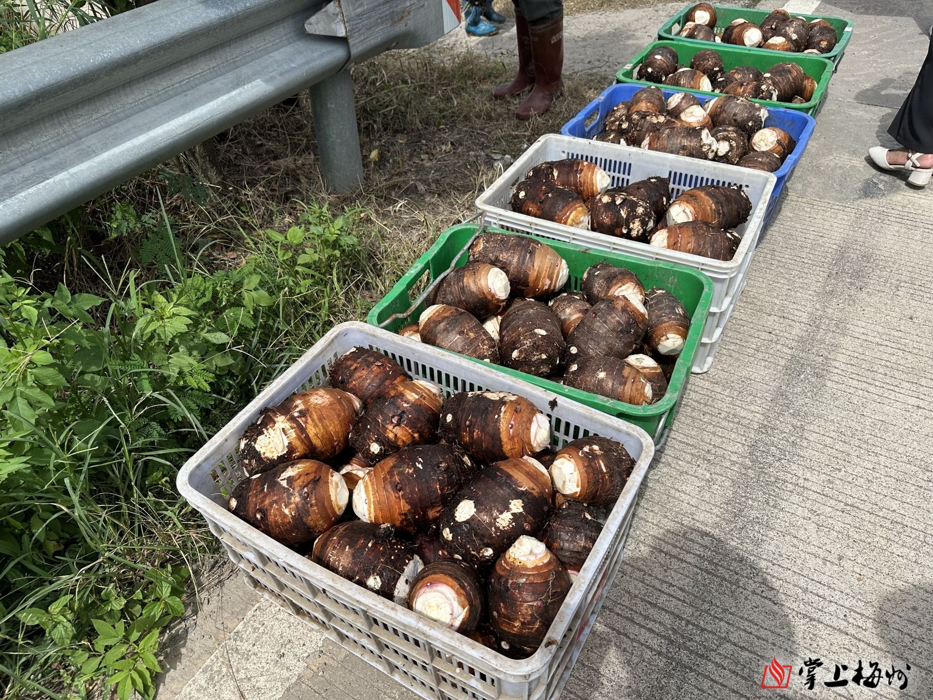 梅江区西阳镇白宫芋头进入采收季,图为刚采挖出来的芋头个大饱满。