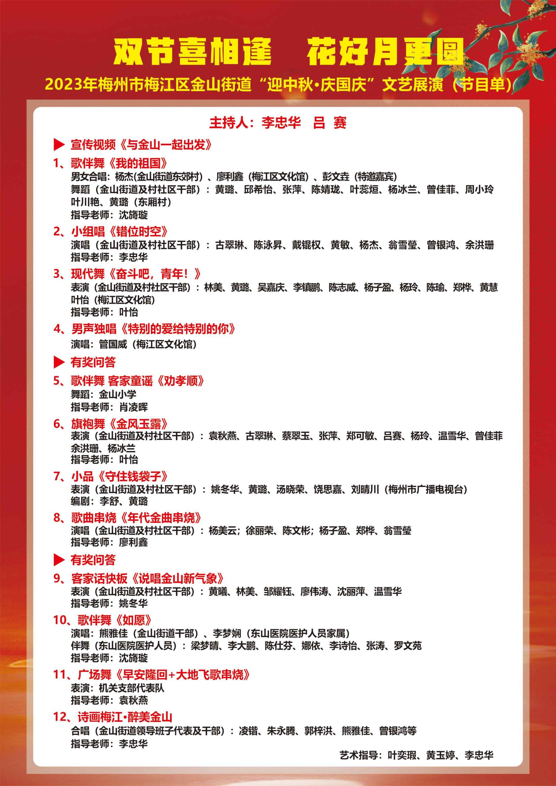 掌上梅州讯 记者从梅江区金山街道获悉,9月26日晚,该街道将开启“迎中秋·庆国庆”系列活动。其中,文艺展演于当日19:45在梅江区青梅互联网创业产业园举办。展演现场有盐焗鸡、腊肠、金柚等产品展示,东山医院设有“守护健康”义诊活动。