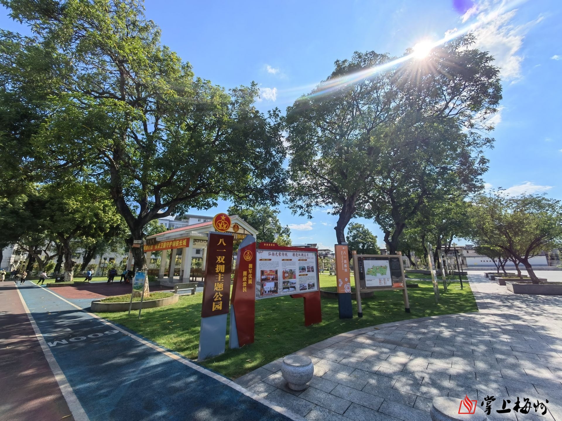 早晨和傍晚,位于梅江区城北镇八一大道的“八一训练场”内,前来休闲、运动的市民络绎不绝。走进“八一训练场”,处处可见“军味”十足的装饰或标语,“双拥亭”里,群众正在休憩。“每天都很热闹,有来锻炼的、也有来闲坐话家常的。”负责公园卫生保洁的温小红介绍, “八一训练场”开放后成为了市民群众休闲娱乐的好去处。