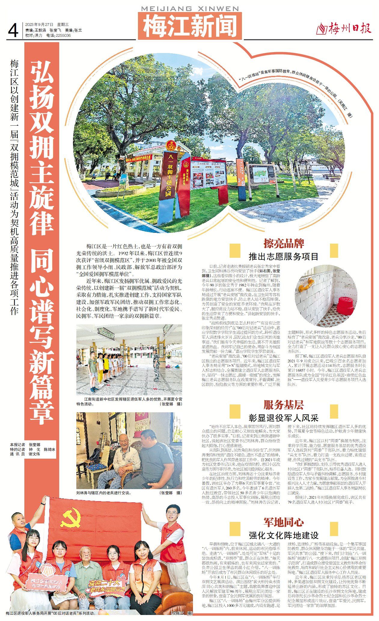 近年来,梅江区发扬拥军优属、拥政爱民的光荣传统,以创建新一届“双拥模范城”活动为契机,采取有力措施,扎实推进创建工作,支持国家军队建设,加强军政军民团结,推动双拥工作常态化、社会化、制度化,军地携手谱写了新时代军爱民、民拥军、军民团结一家亲的双拥新篇章。