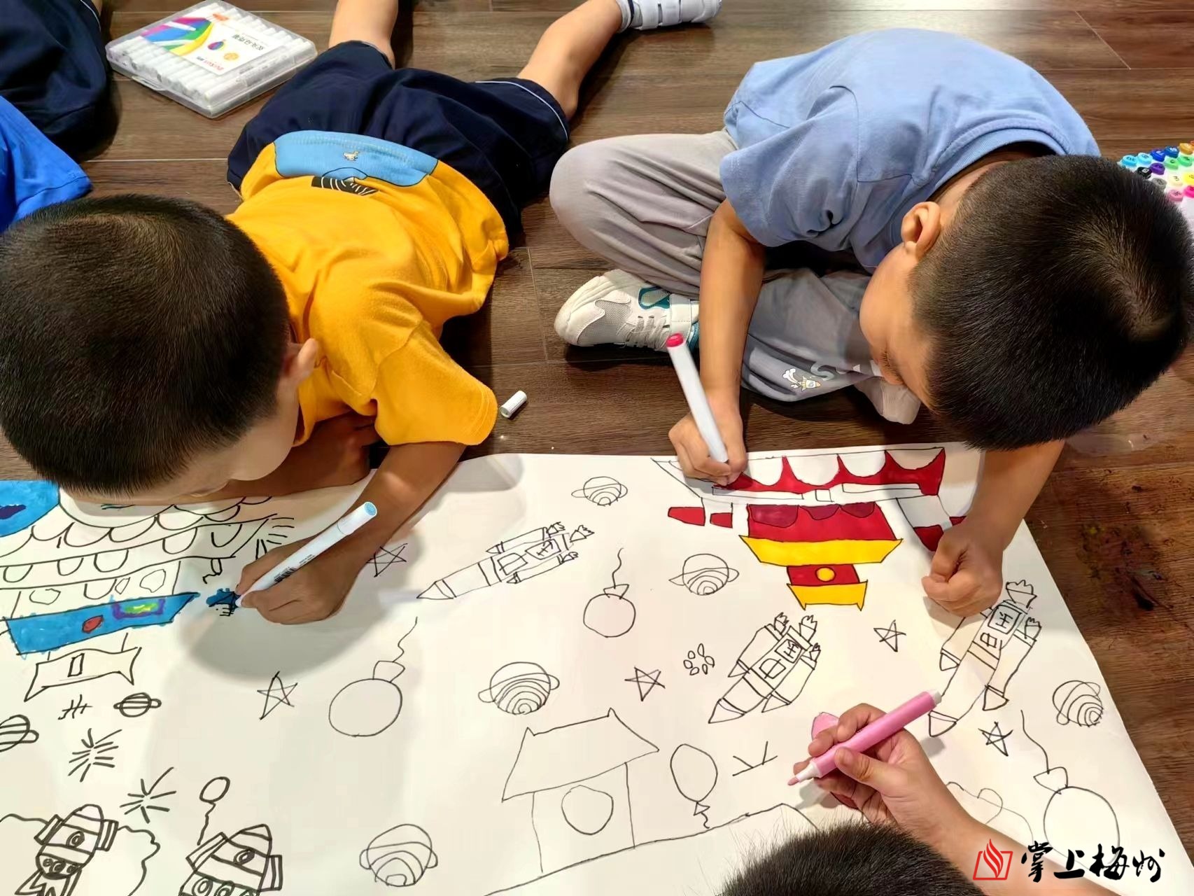 活动中,孩子们欢聚一堂,手握画笔,在百米长卷上埋头作画,用巧妙的构图、独特的构思,画出一幅幅色彩斑斓、童趣盎然的图画,倾注对祖国母亲无尽的爱意。百米画卷贺国庆,画出了孩子们的心之所想,心之所向,画出了对祖国的热爱,画出了对祖国母亲深深的祝福。