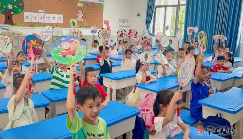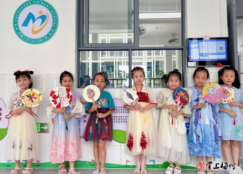 团扇象征了团圆美满之意,凝结了中国传统文化内涵。当天下午,记者踏进梅江区元城小学,只见学生们在美术老师的指导下,拿起画笔,发挥想象,结合花卉、动物、神话人物等绘制出一把把别具一格的团扇。学生们小心翼翼地将制作好的团扇吊挂在班级门口的栏杆上,组成一幅幅美丽的中秋画卷,为校园增添了一道靓丽的风景线。