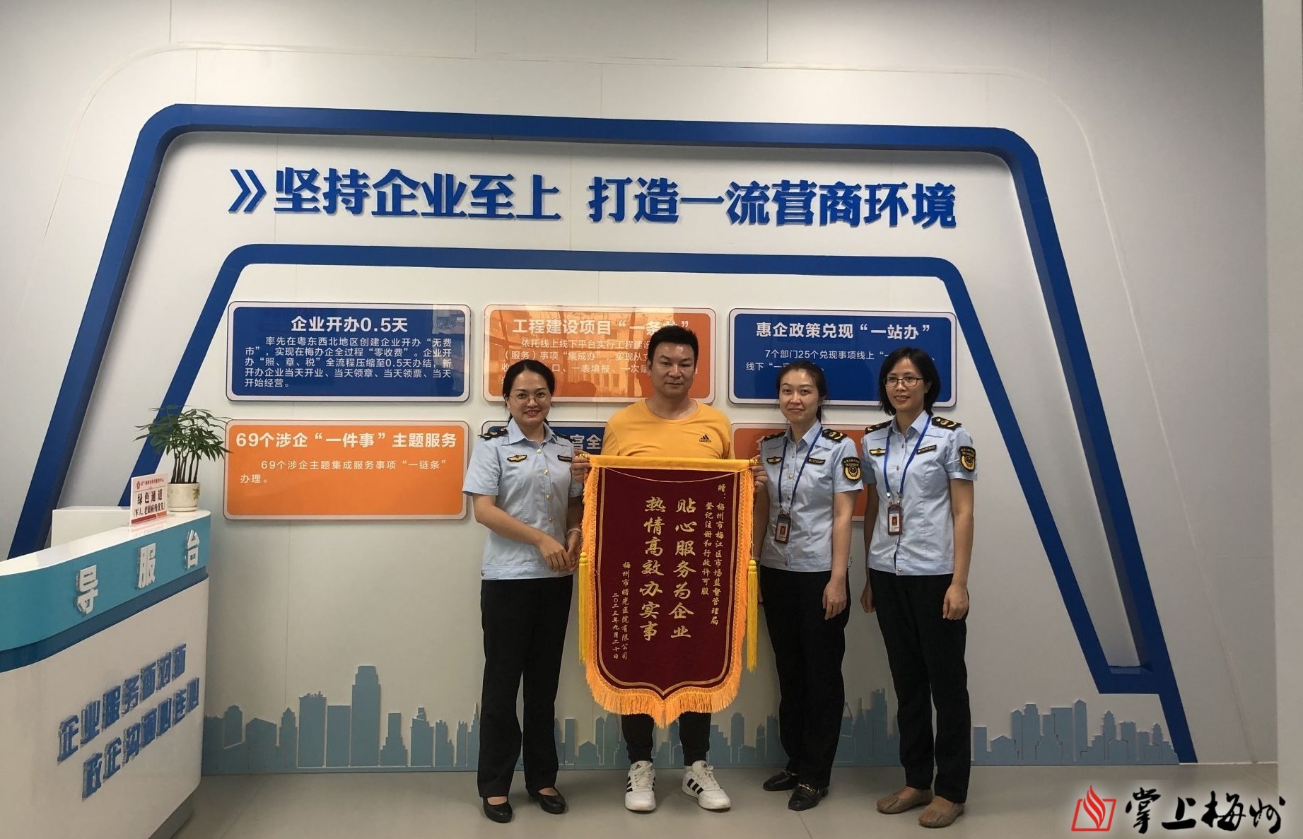 掌上梅州讯 近期,梅江区市场监管局收到一家企业送来的致谢锦旗,锦旗上“情系企业排忧解难 助企发展尽职尽责”“贴心服务为企业 热情高效办实事”的文字道出了他们对该局工作人员高效服务的肯定和感谢。