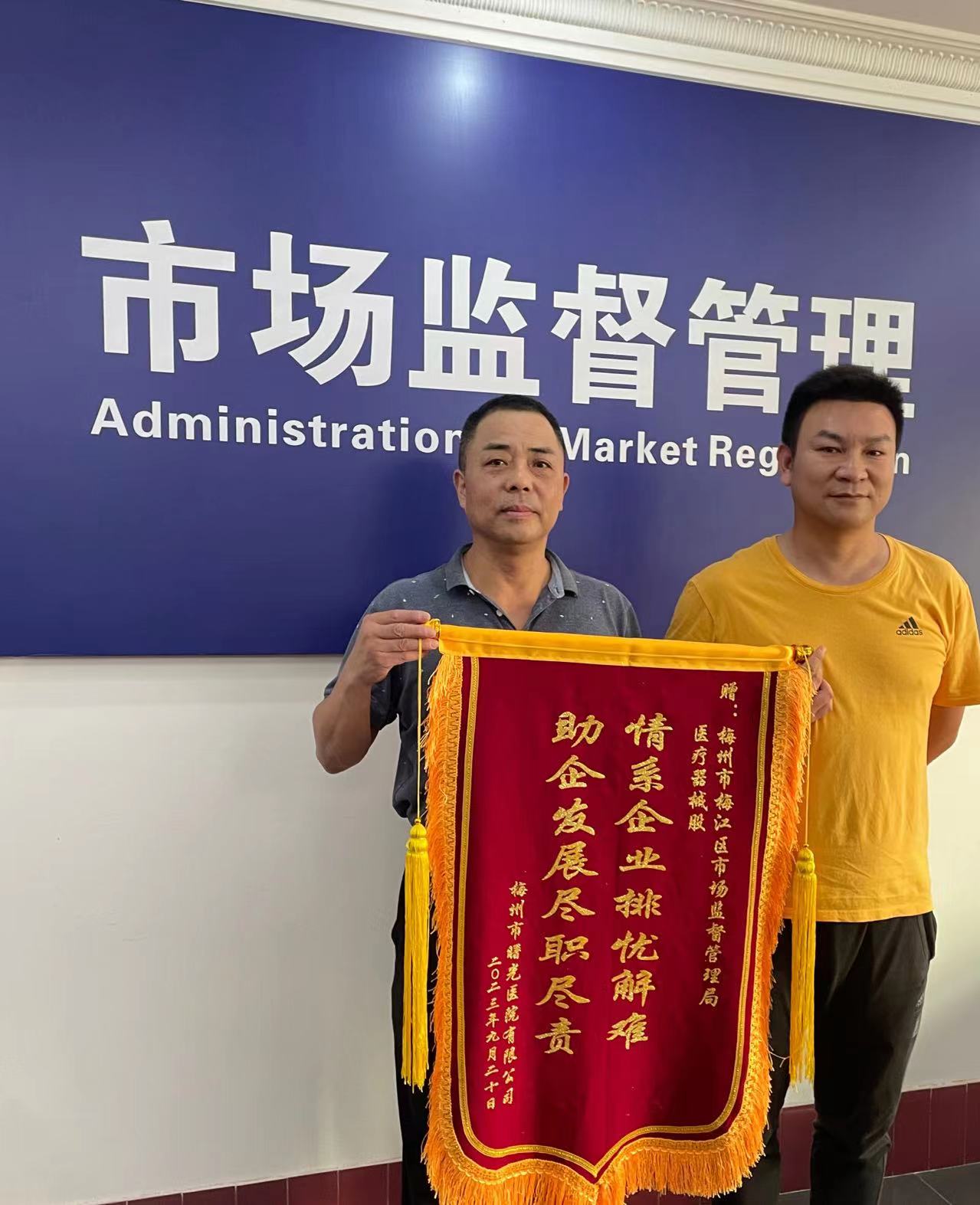 随后,该企业相关负责人向梅江区市场监管局登记股、医械股等相关股室说明情况、提出申请后,梅江区市场监管局管理工作人员积极响应、主动作为,迅速开通“马上办”服务,“一对一”帮助企业分析存在的难点堵点问题,详细讲解相关流程及注意事项,全程指导其网上申报、准备材料,帮助该公司快速办理营业执照,切实服务好企业。“梅江区市场监管局这种‘急民之所急,解民之所忧’的服务理念,让我们企业很感动,也很有信心扎根在此发展。”送来锦旗的企业代表人对梅江区市场监管局高效便民的服务表示赞许。