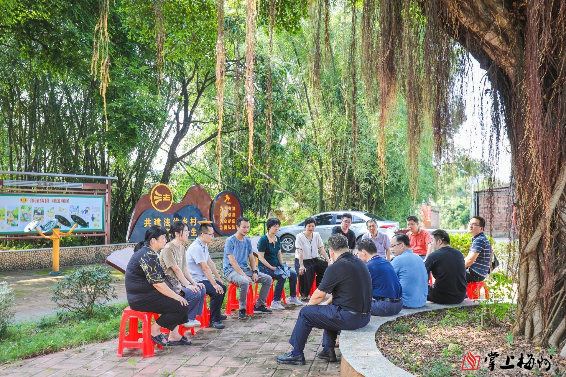 西郊街道桃西村村民与村干部围坐在榕树下商讨村中大小事。