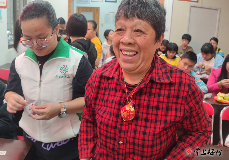 活动当天,社区老人领着自己的孙子孙女一起来到怡乐社区新时代文明实践站参加活动。在社工的引领下,老少同坐一堂,一起学习重阳起源、知重阳习俗、学重阳诗词、听重阳故事,给孩子们上了一堂生动的孝亲敬老课。随后,老人和孩子在社工的指导下,携手制作茱萸香囊,戴上香囊的老人纷纷露出了满足的笑容。