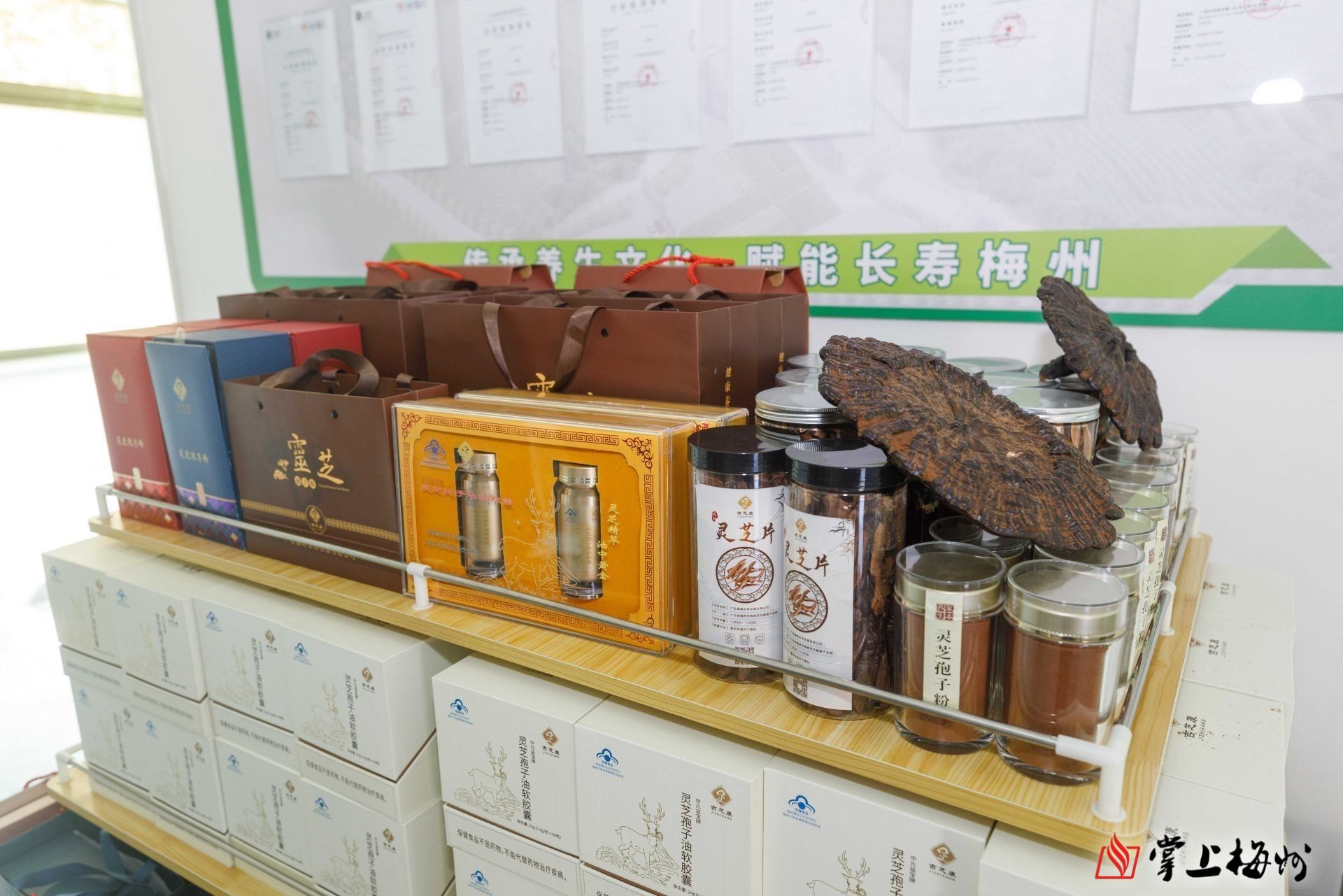 森峰现代农业综合体示范园林下种植基地生产的灵芝做成了灵芝粉、灵芝茶等产品。(林翔 摄)
