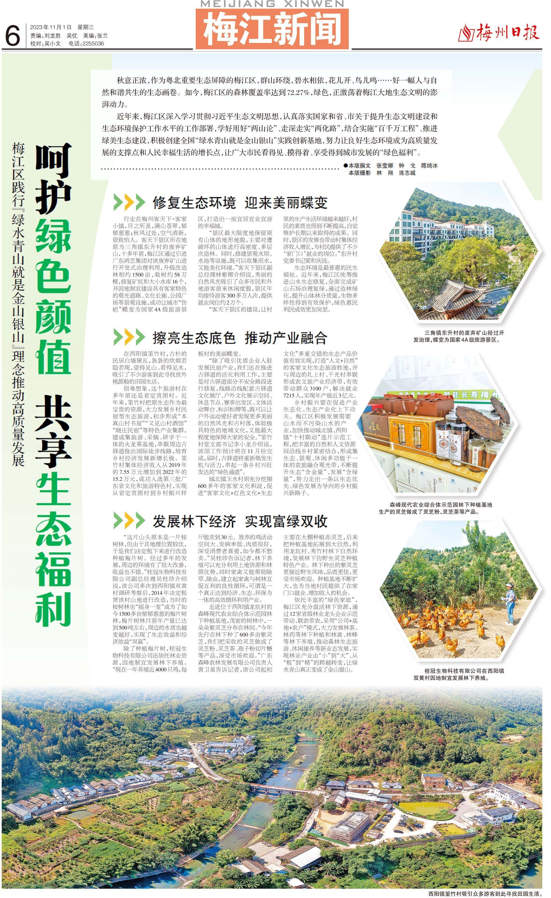秋意正浓,作为粤北重要生态屏障的梅江区,群山环绕,碧水相依,花儿开、鸟儿鸣……好一幅人与自然和谐共生的生态画卷。如今,梅江区的森林覆盖率达到72.27%,绿色,正激荡着梅江大地生态文明的澎湃动力。