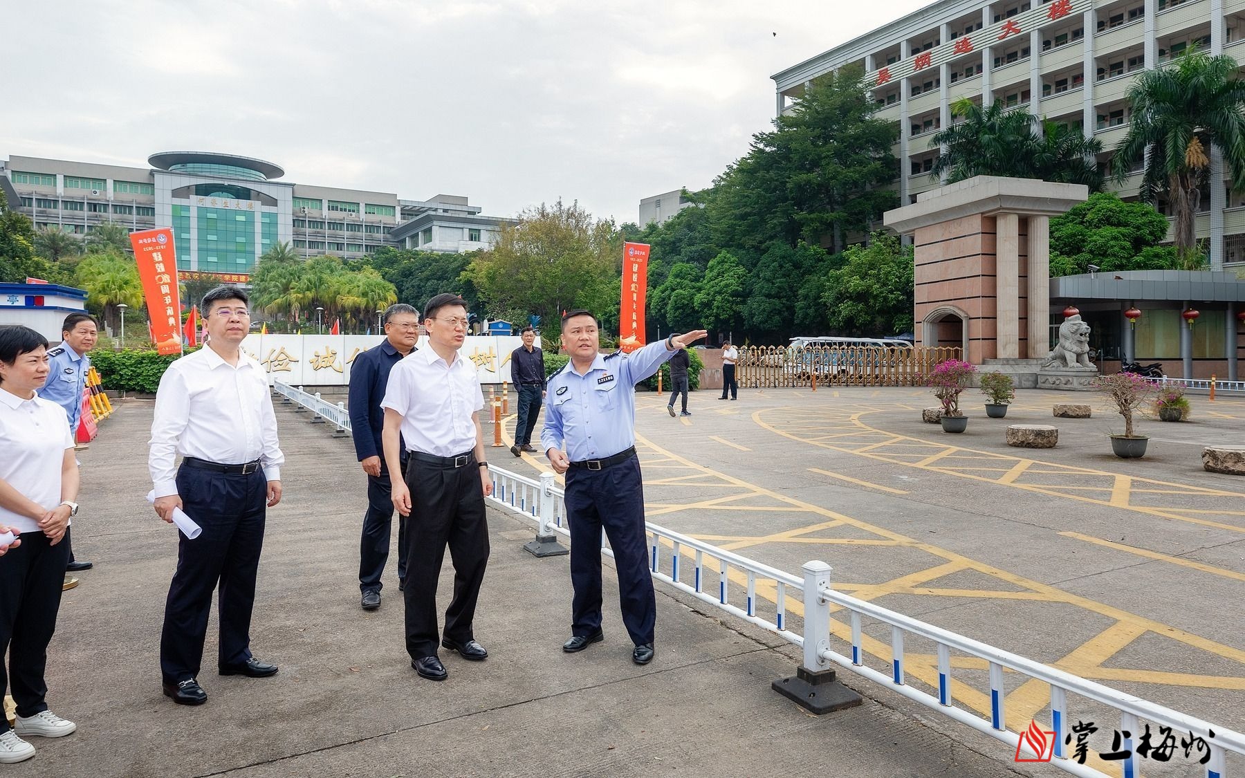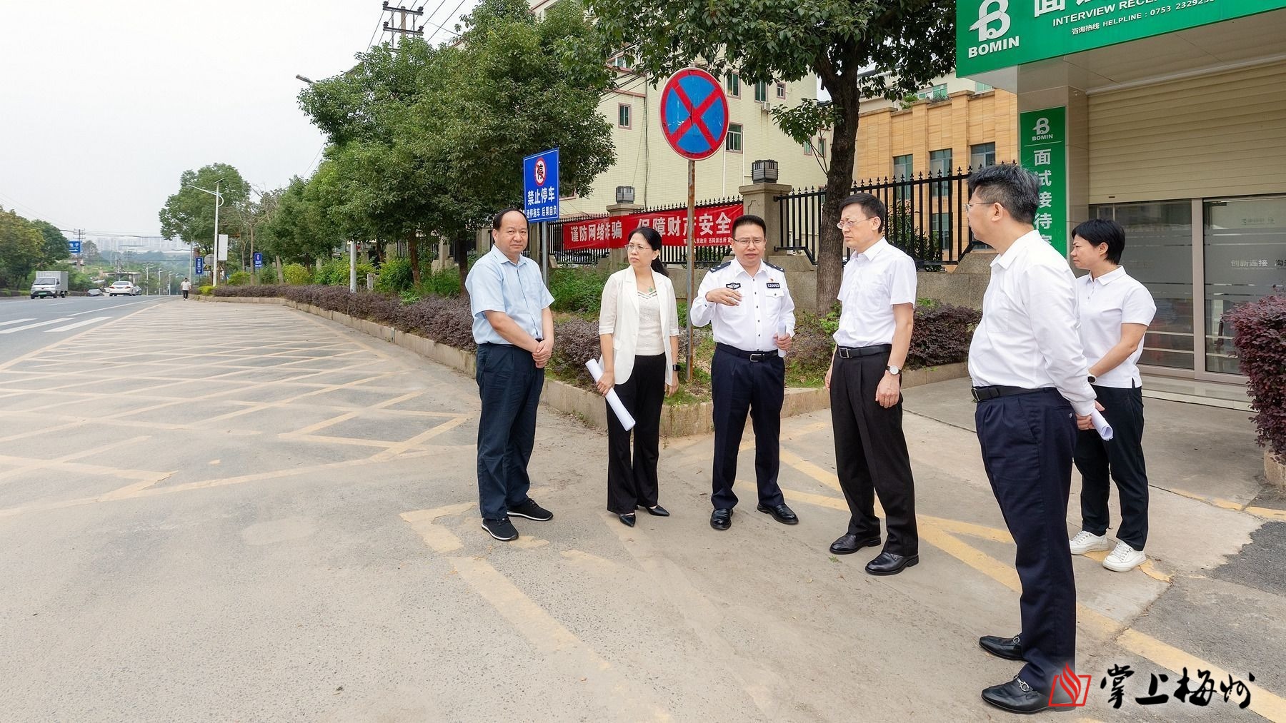 马正勇在嘉应大学西门路口检查并听取交通重要点位事故预防工作情况汇报。