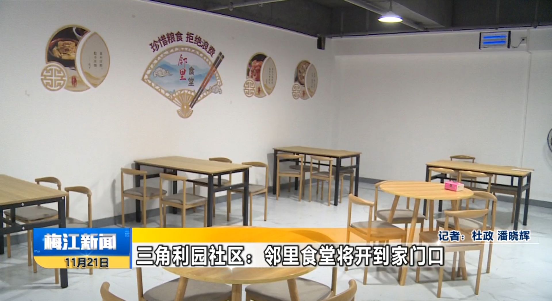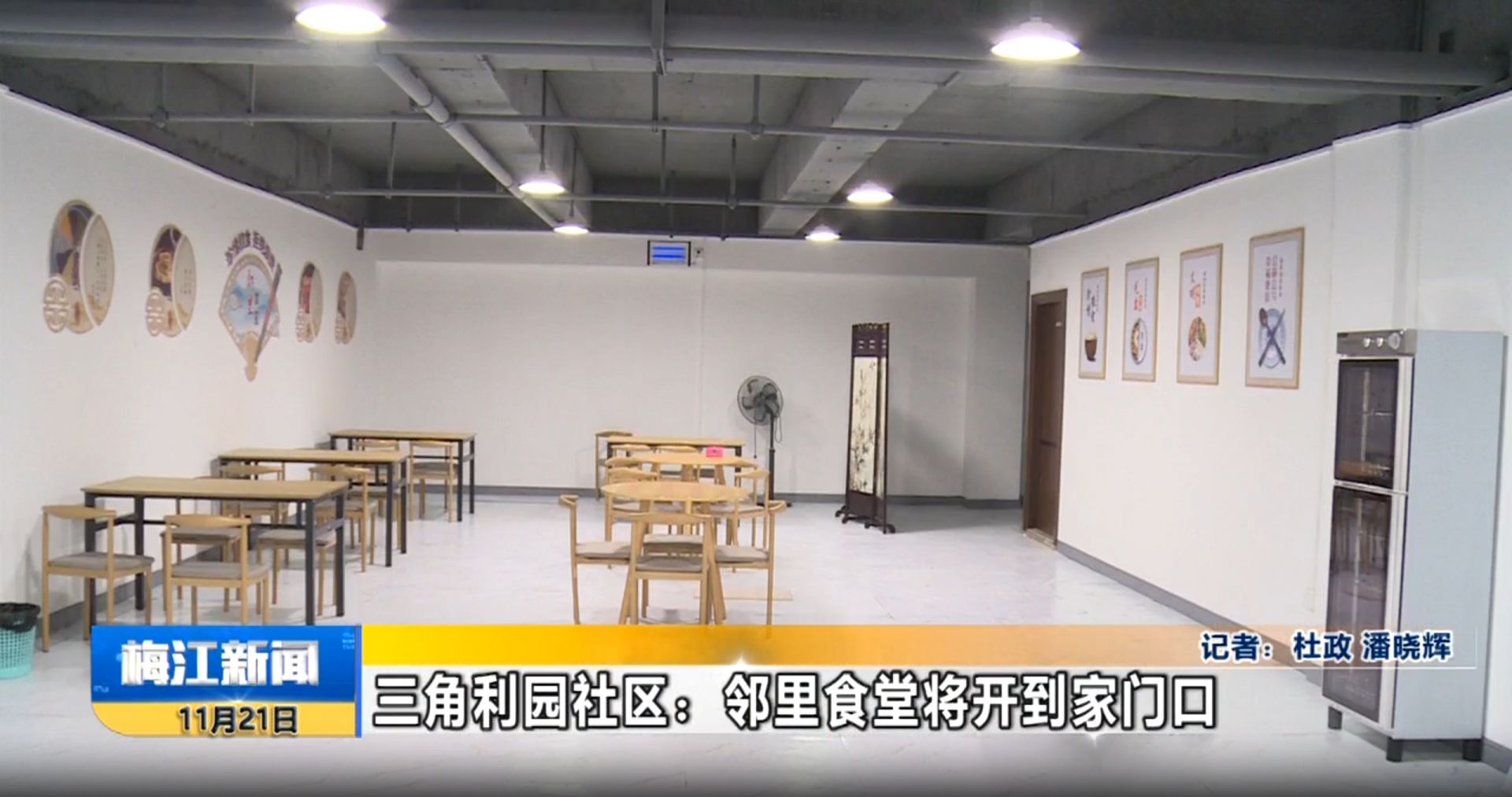 三角镇利园社区邻里食堂位于利园社区党群服务中心旁,占地面积约100平方米,预计11月底可以正式对外开放,届时能满足35位顾客同时用餐需求。